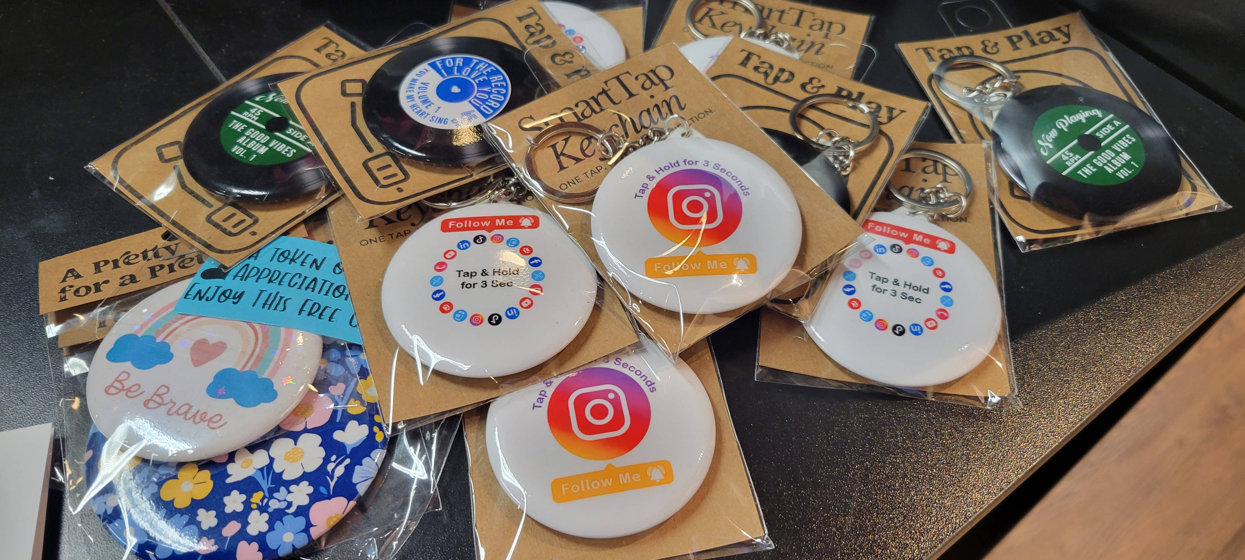 Encourage people to follow you with just a tap! This Smart Keychain makes it easier than ever to grow your audience—just tap and hold for instant access to your profile. Perfect for content creators, influencers, and businesses looking to boost engagement effortlessly! 🔥 This Digital Business Card is available in a variety of custom styles so you can choose the perfect match for your brand or personal style. 1. Keychain with Mirror 2. Pinback Button 3. Magnetic Bottle Opener Instructions on how to link your Social Media and/or website to the keychain will be provided with your order. With built-in Tappable Technology, you can seamlessly link your social media profiles, website, portfolio, or any online content you want to share. Simply program your link and tap the keychain against any NFC-enabled device to connect instantly. Perfect for small business owners, content creators, and basically anyone looking to grow their network, this keychain makes networking smoother.