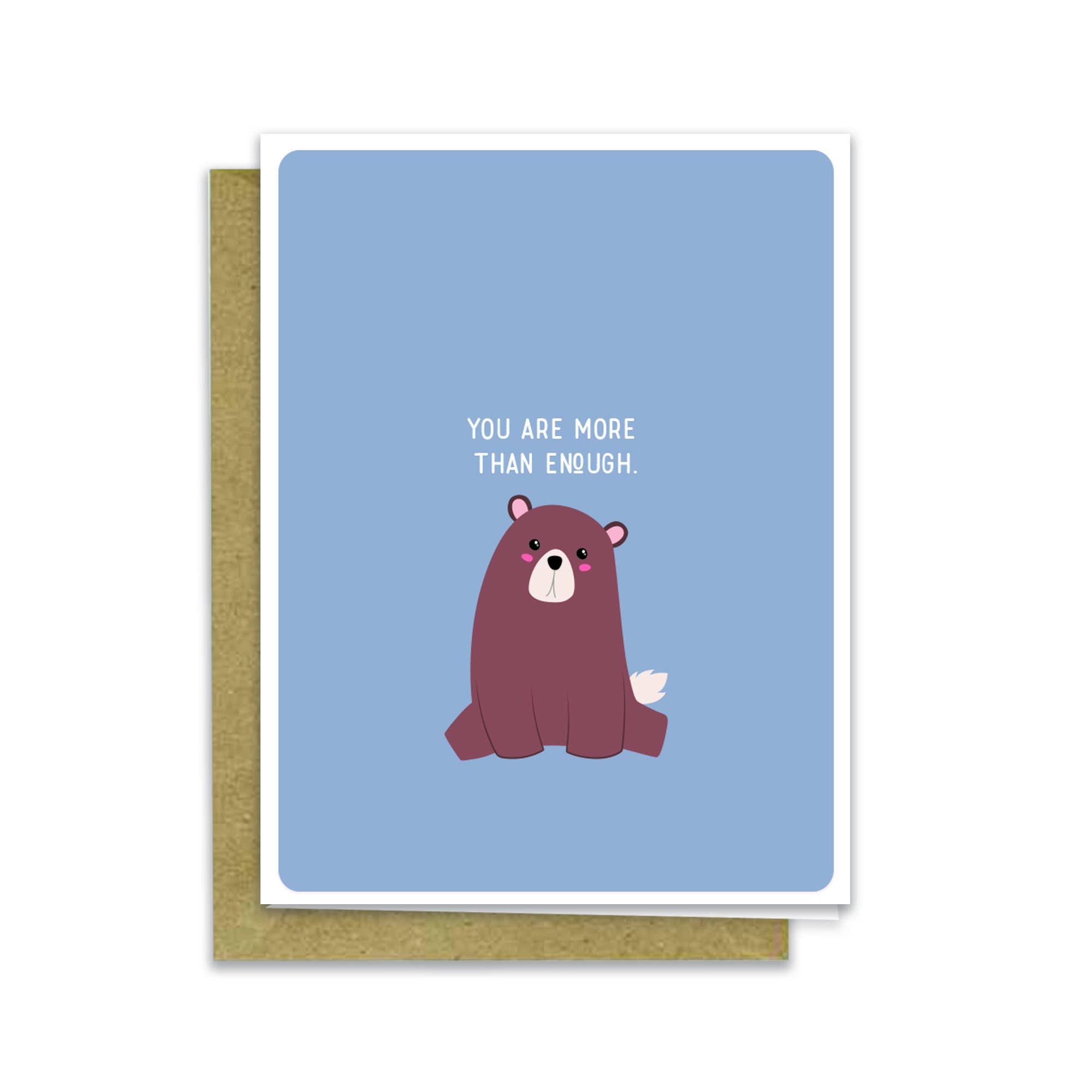 A2 greeting card is printed on FSC Certified, eco-friendly and recycled premium 130lb. matte text paper and includes a complimentary A2 brown point-flap Kraft envelopes. Blank inside. Greeting card is enclosed in bio-degradable clear plastic card sleeve and will be shipped in a protective mailer. Material: FSC-Certified, eco-friendly 130lb. recycled matte text paper. Includes brown kraft paper pointed-flap envelope. Packaged in biodegradable clear card sleeve. Size: 4.25in x 5.5in.