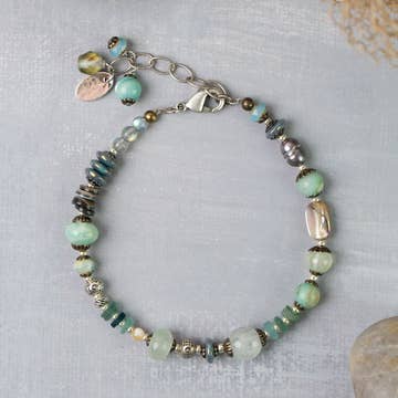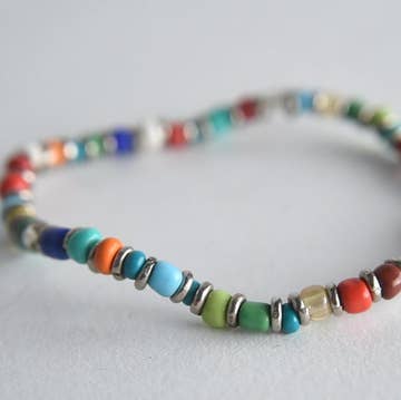 Founded on a twist of fate, just like Project Have Hope. Express your belief in the bold possibility of the unexpected. The Neno bracelet is for the believer in miracles and for the ones who make miracles reality. Pair your determination with joyful color. A combination of mixed media, including recycled paper, clay, bone and glass beads, is strung on memory wire for an easy fit. The diameter measures 2.5 inches.