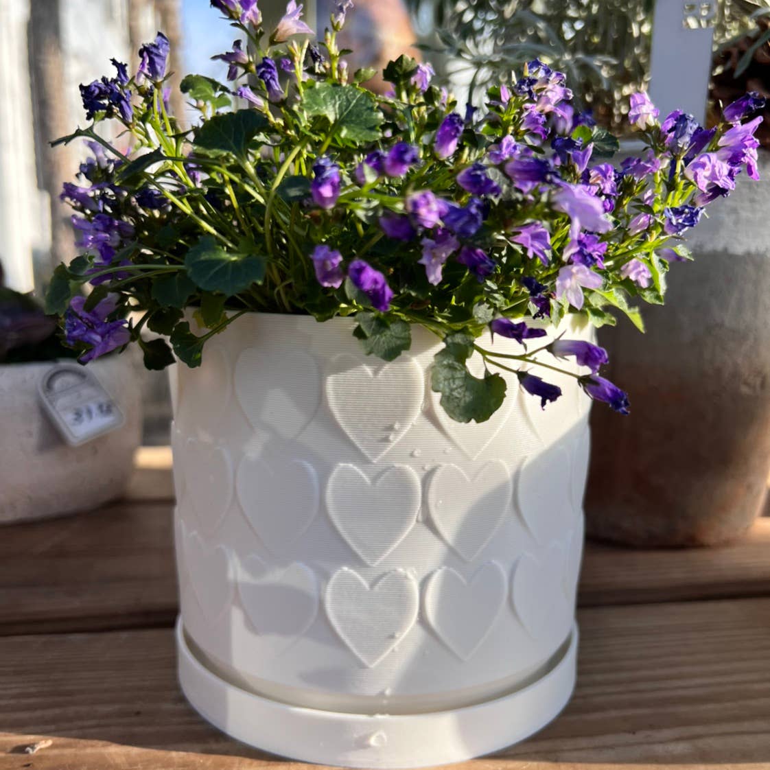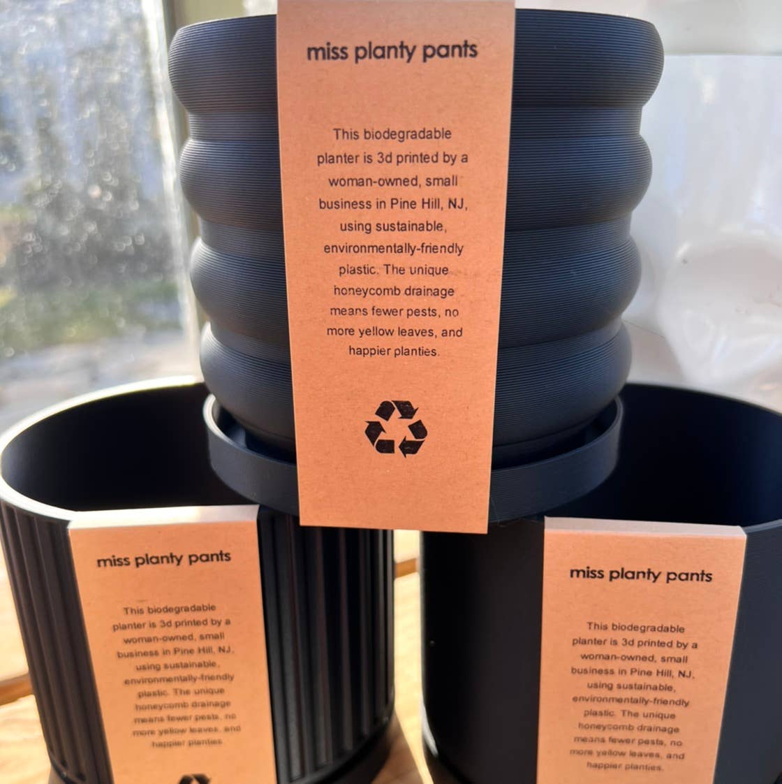These planters are made with a unique honeycomb bottom that allows for superior drainage. Use the listing drop down to choose your size. Planter dimensions: 8" wide x 7" tall 7" wide x 6.1" tall 6" wide x 5.3" tall 5" wide x 4.4" tall Materials: All planters in the shop are made with a biodegradable plastic that is sustainably produced with corn starch. They are sturdy and will last for years, but do have a little bit of give. Process: I make each of the planters in my shop with my 3d printer. They start with a 3d model that I edit, edit,& edit some more until it produces a beautiful finished product that goes with all kinds of decor. This listing is one of many colors and designs available in the shop.