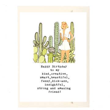 This card is blank on the inside. It comes with pink envelope. The card is A6 in size. The size of the card is 4 ½" x 6 ¼" when folded. All of our cards are printed on 100% recycled paper. Each card comes in a sleeve that is made of plant-based and compostable material. Designed and printed in Toronto, Canada.