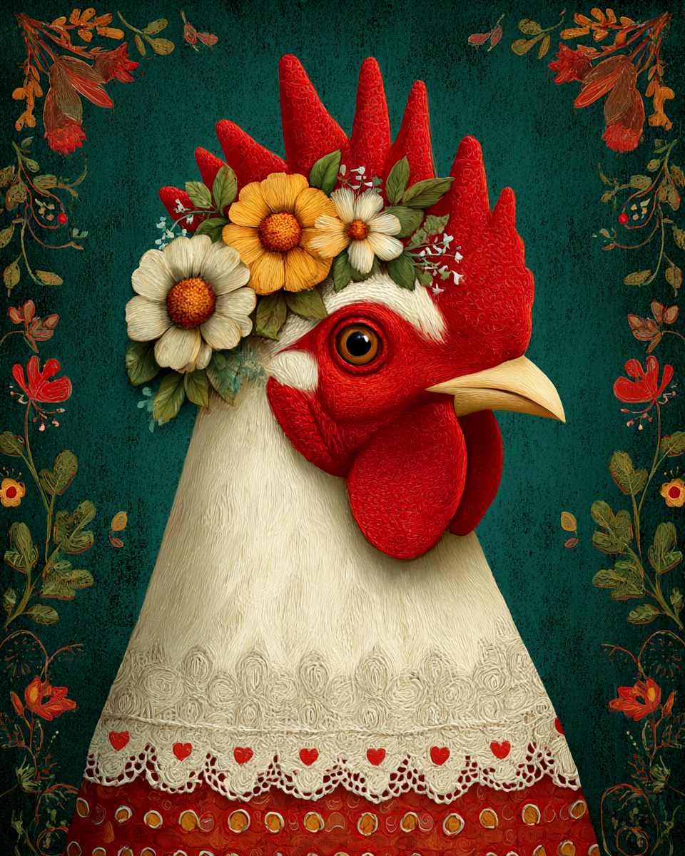 5"x 7" The Chicken Print - Quilted Portrait