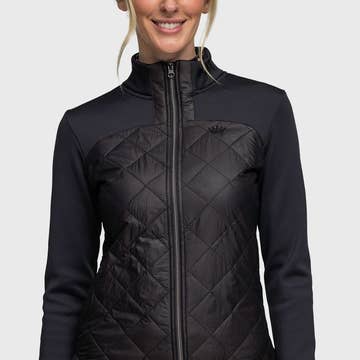 Meet the Pavement Jacket, your new go to outer layer for movement, morning walks, and everything in between. Crafted from our Core Comfort fabric, this form fitting sports jacket delivers the perfect balance of stretch, structure, and breathability. Designed to flatter as much as it performs, sculpting stitch details are strategically placed to enhance the shape of the body, creating a sleek and streamlined fit. The silhouette sits just above the hips for comfortable coverage without feeling cropped. A zip through front with a high neckline offers added warmth and wind protection, while thumbholes and secure zip pockets bring practical comfort to every wear. Whether you are heading out the door or warming up, the Pavement Jacket moves with you effortlessly. Madeline is wearing a size Small. She usually wears a size AU8, is 179cm tall, with a 86cm bust, 64cm waist & 89cm hips. Fabric Composition: 77% Recycled Nylon, 23% Spandex * Form fitting silhouette for a flattering, streamlined look * Strategically placed sculpting stitch detailing to enhance shape and fit * Length sits just above the hips for comfortable coverage * Zip through front with high neck for warmth and wind protection * Two zippered pockets to keep essentials secure * Thumbholes for added comfort and coverage * Made from DK Active’s Core Comfort fabric, crafted from recycled materials