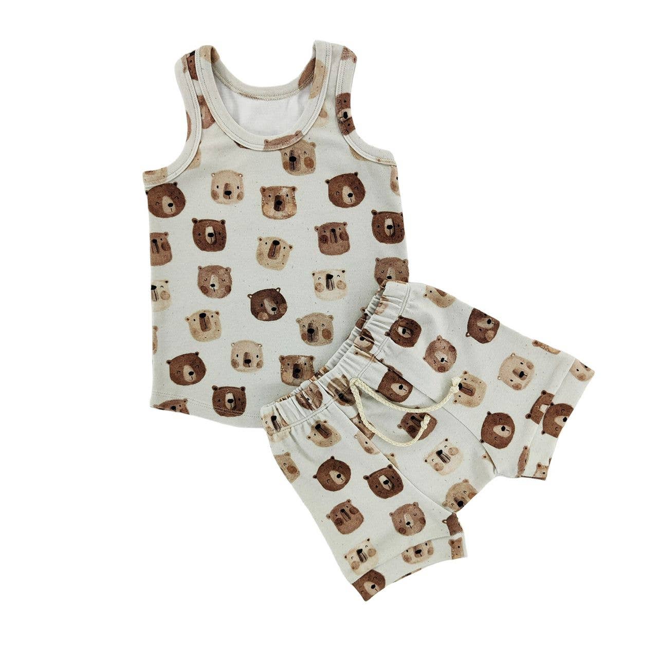 True to size 2 piece tank and shorts set Soft, stretchy fabric Full elastic waistband shorts 95% Cotton 5% Spandex