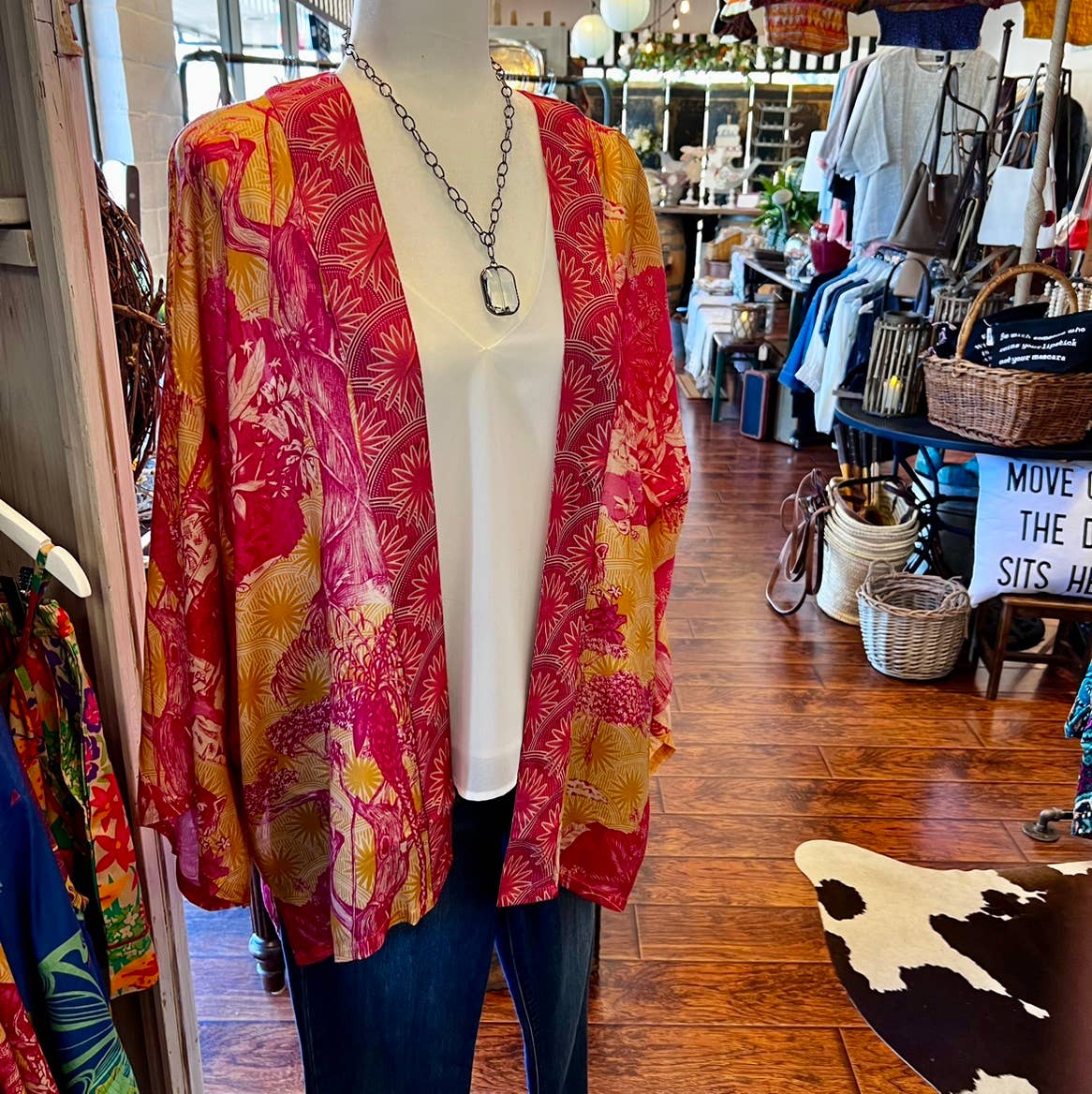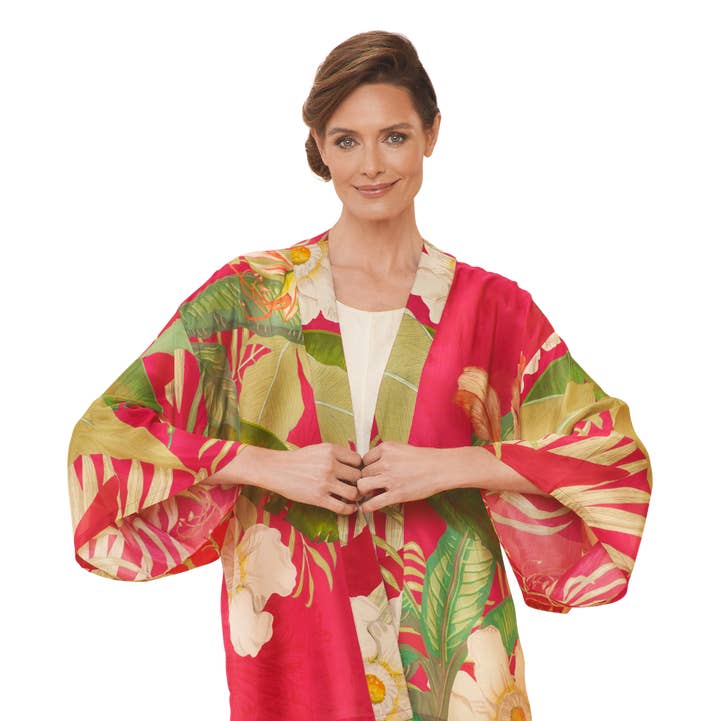 Delicate Tropical Kimono Jacket in Candy