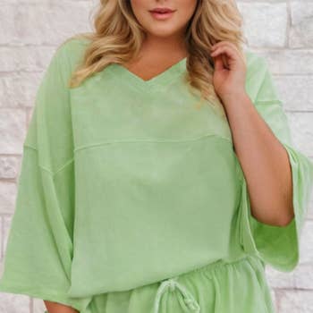 Product Overview The Cabana Green Terry Shorts Set is a terry cloth shorts set designed for customers who enjoy coordinated looks without sacrificing comfort. This style performs well for lounging, travel, and warm-weather destinations. A fan favorite in multiple colors, this shorts set is loved by women of a wide range of ages, sizes, and fashion preferences. Why This Style Sells Matching sets continue to resonate with customers because they remove decision fatigue. This set offers flexibility: it can be worn together or styled separately, increasing perceived value and versatility. How Customers Wear It • As a complete lounge set • Mixed with other pieces • For travel days and casual outings • Lounging on the couch reading or watching Netflix • Easy everyday style loungewear • Can be sold as PJs! Fit & Feel • Relaxed fit with comfortable stretch • Forgiving and stretchy pull-on shorts can be worn at natural waist or on hips • We’ve added a size and updated our labels to Small / Medium / Large for easier shopping. If you’ve purchased before, our Small = past XS/S and Medium = past M/L. Large is a brand-new addition, made to give a little extra room while keeping the same flattering fit. Fabric & Care • Soft and breathable LushLoop terry cloth fabric • Machine wash cold; Tumble dry low or lay flat to dry for longevity Key Selling Points • Comfortable and easy to style • Versatile as a set or separates • Appeals to a wide age range and style preferences • Functional and fashionable pockets Ideal For These Stores Resort shops, spas, casual lifestyle boutiques, travel retailers.