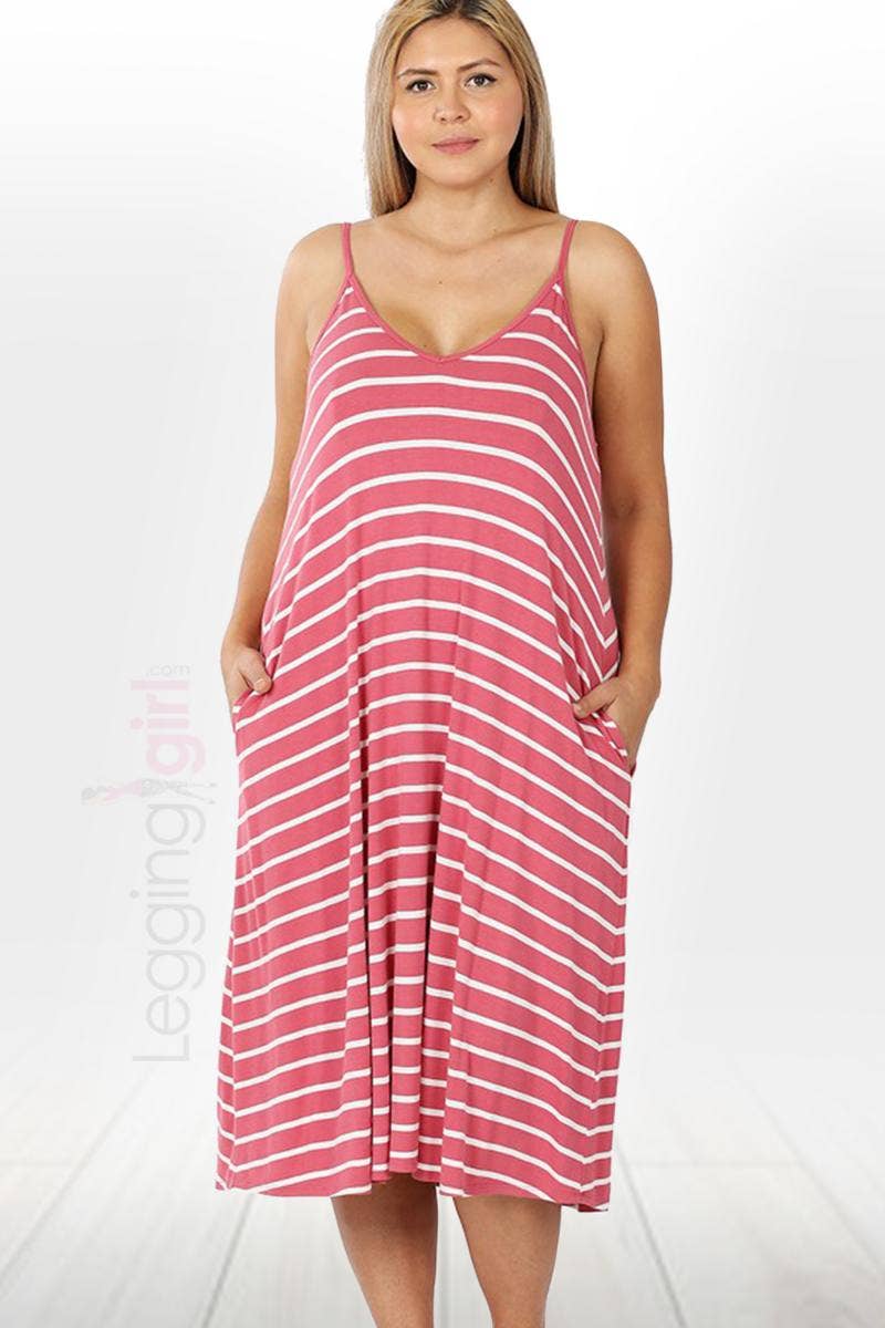 Nurode's Plus Size Tie Front Hem Midi Dress in Ocean Stripe