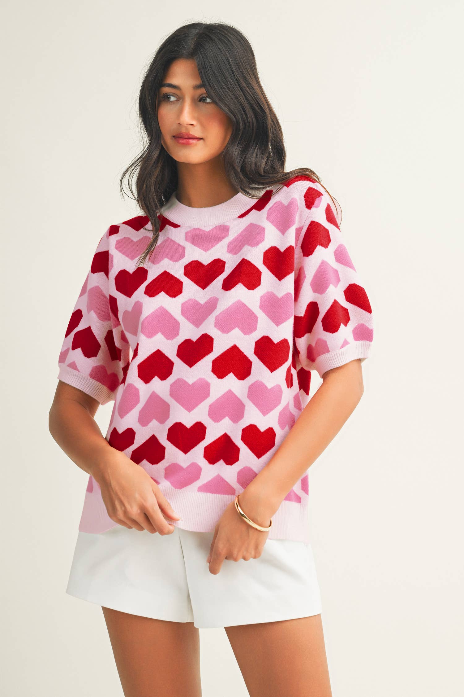 Tennis Sweater - LOVE Quarter Zip Cream/Green/Pink