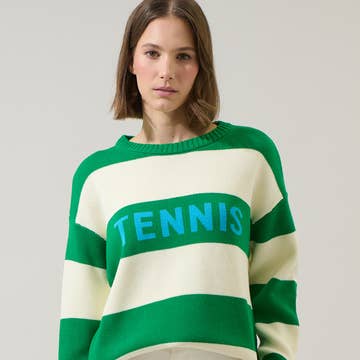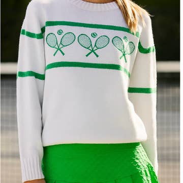 Tennis Sweater - Racquets Cream/Green