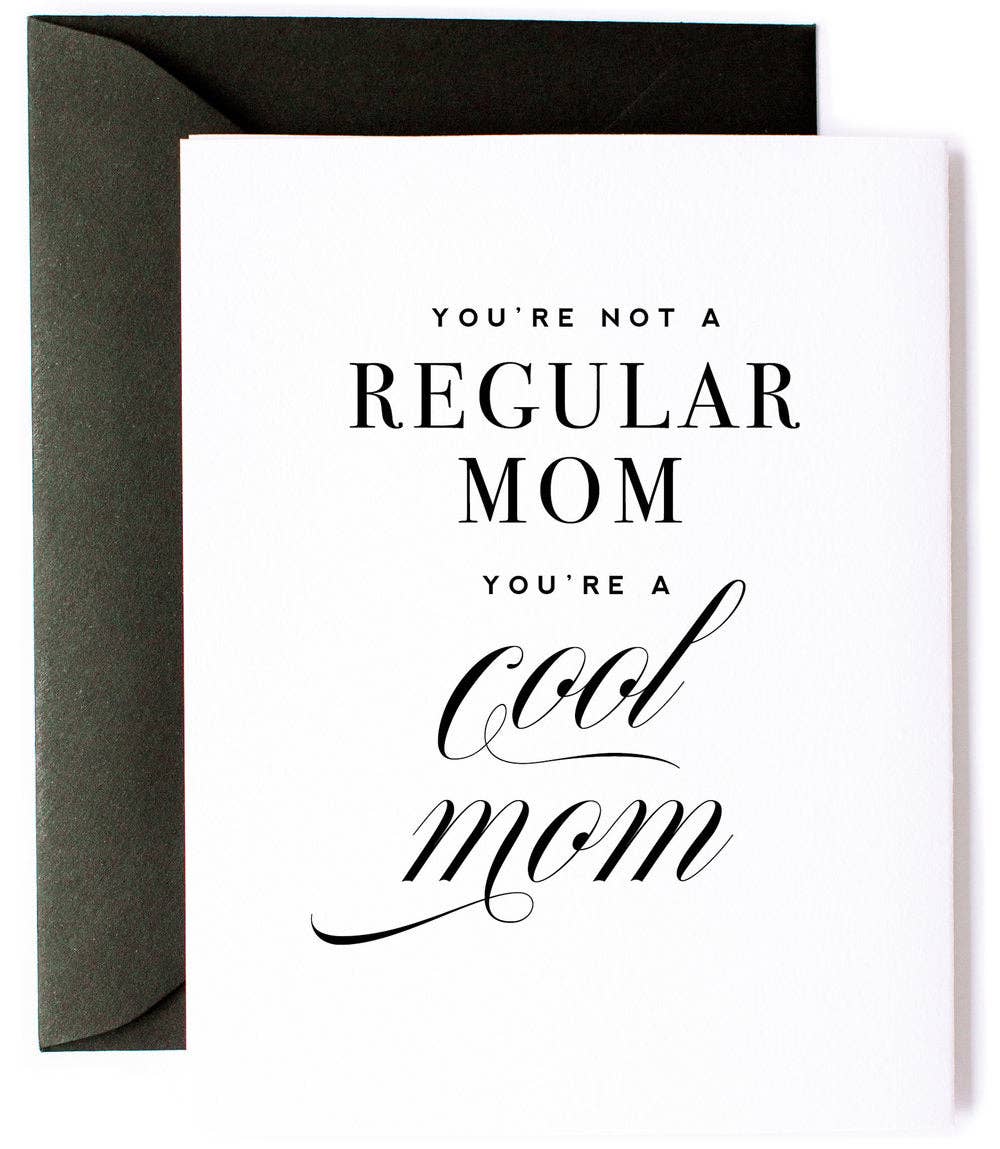 For the moms who are badass, even though they're not cool enough to know what that means. This cheeky card is printed on high quality card stock that makes the ink really pop. It comes display shelf ready, with a fabulous envelope and a clear sheath. The card measures 4.25 x 5.5 inches and is blank inside. We design, print, cut, and package all our cards in-house while our little dog supervises.