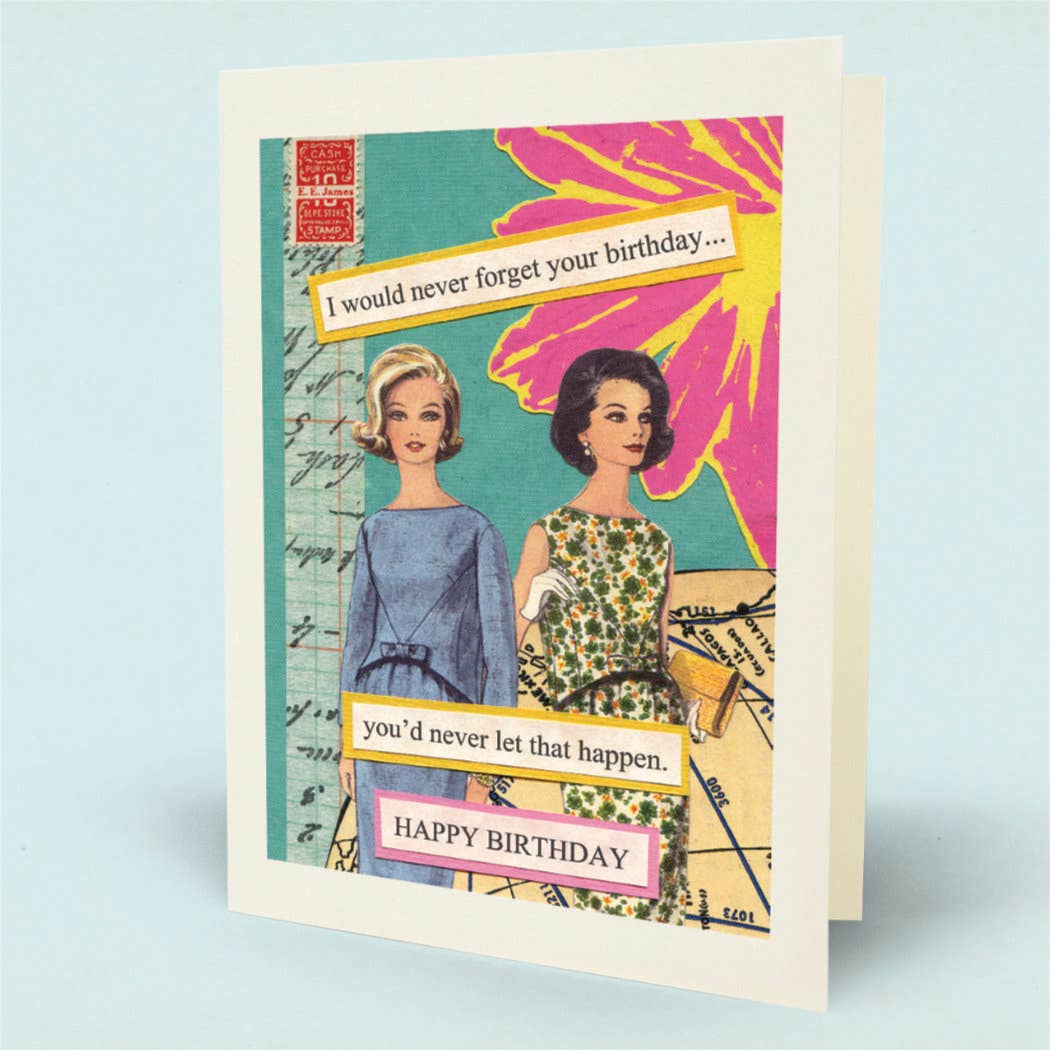 Birthday Card. Printed in the USA on recycled textured paper. Comes with color co-ordinated envelope. Packaged in cello sleeve. Square cards require additional postage.