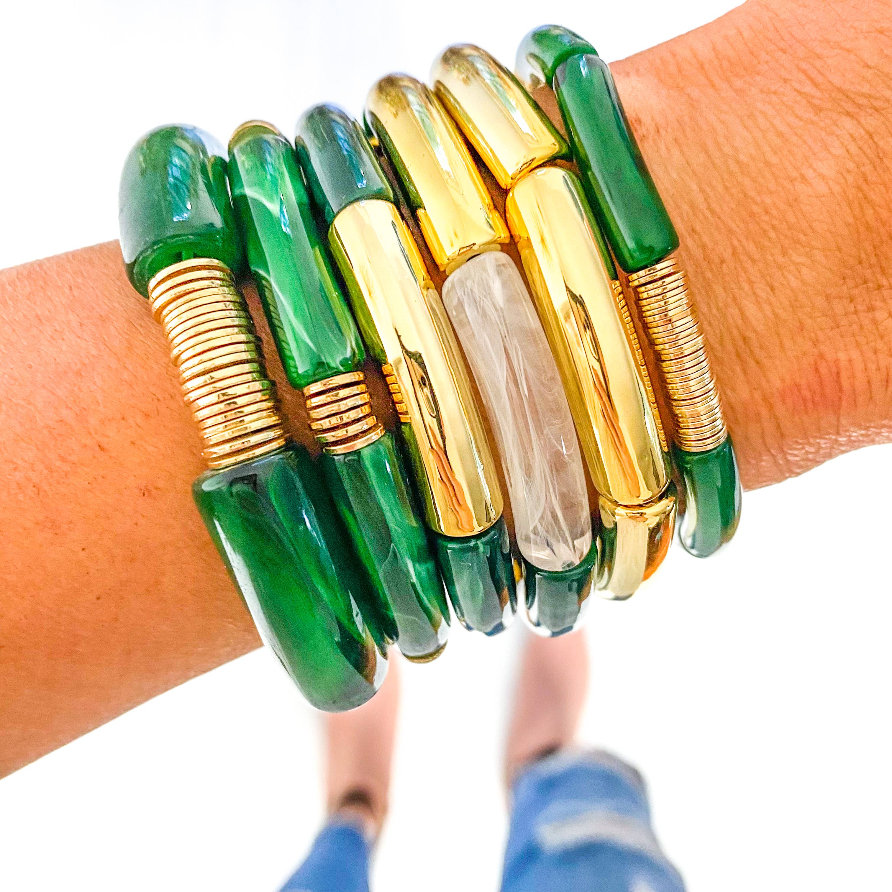 Our Acrylic Tube Bamboo Bracelets are the perfect fun statement bracelet. You can mix and match with other acrylic tube bamboo bracelets or any of our other bracelet styles to make unique pieces. - Stretch - Standard Size- Fits 7 Inch wrist comfortably Made with High quality acrylic.