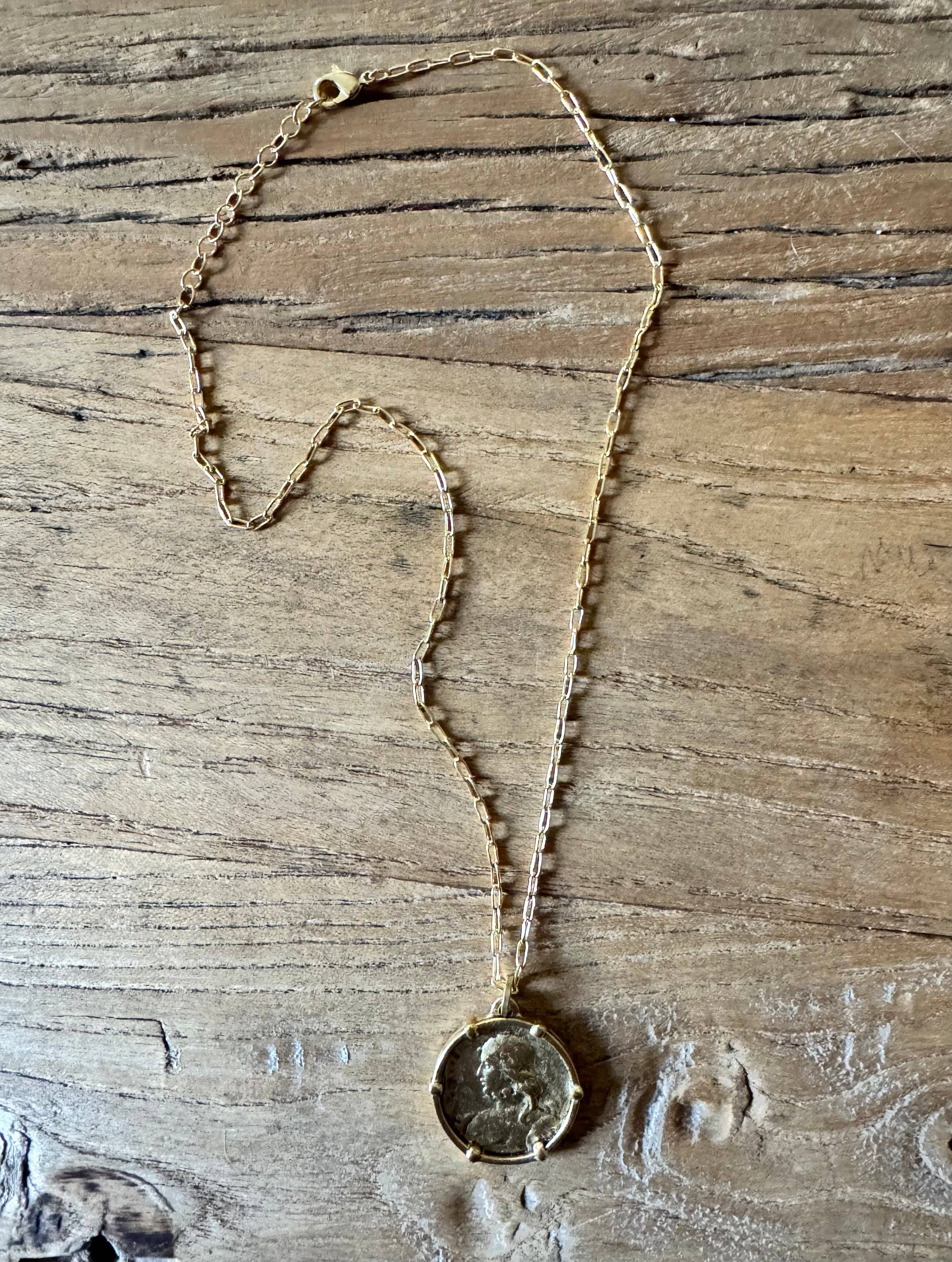 These unique necklaces are comprised of charm findings and a genuine buffalo nickel. The necklace charms themselves hang approximately 3.25" long, so they are a statement piece! We've kept the charms light so that it's not too heavy, and so that the buffalo nickel really shines! They hang on a 30" stainless steel ball chain and are packaged on a 3x5" card in a clear sleeve for easy display!