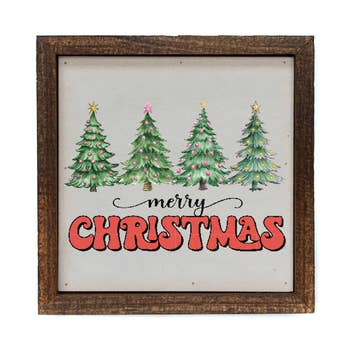 This is the perfect decor piece for a kid's room during the holidays! Or if you have baby's first Christmas, this is a cute way to decorate your entryway or playroom. This is great to sell in toy shops or baby stores. • Printed with high resolution archival giclee inks • Fine art cotton canvas mounted on wood • Solid hardwood frame in shown stain colors • Sustainable American oak or alder wood • Made in the USA in our Utah studio • MINI 6" tall x 6" wide x 1.25" deep w/ 1/4" thick frame • SMALL 11" tall x 11" wide x 1.25" deep w/ 1/4" thick frame • MEDIUM 15" tall x 15" wide x 1.5" deep w/ 3/4" thick frame • LARGE 20" tall x 20" wide x 1.5" deep w/ 3/4" thick frame • Signs may have +/-1" variations • All signs can stand on a shelf or table (Medium & Large can also hang on a wall) • Farmhouse style frames have small rustic imperfections that make them unique