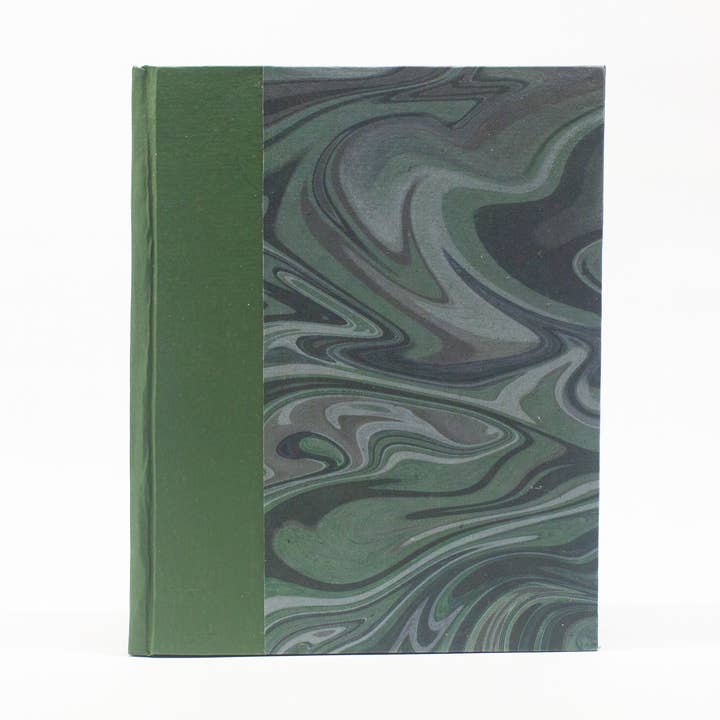 Dive into a sea of inspiration with Marbled Midnight Blue. The tranquil, swirling patterns and cool hues create a serene backdrop for your handwritten expressions. Let your inspiration flow within the mesmerizing pages of this handcrafted Barrovian Book. 🌟 Entirely Handbound: With 200 pages of superfine premium paper, Barrovian Books are entirely handbound using traditional bookbinding techniques that give a substantial feel. 🌿 Eco-Friendly & Sustainable: Each book features end sheets and hardcovers meticulously crafted from handmade paper made by Barrovian Books Ltd. with exclusive designs created in-house, giving new life to old materials and helping to reduce waste. Product Details: Size: 5.75” W x 7.25” L x 1” D Pages: 200 lined, blank, or dot-grid pages (pages are not handmade paper) Tangible havens for ideas and imagination that sell themselves!