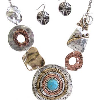 Antique Silver Geometric Design Jewelry Set