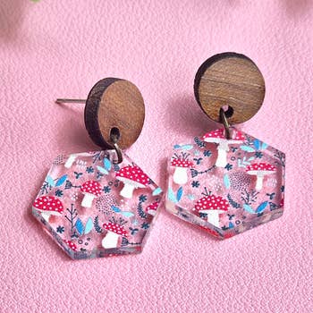 Wood Mushroom Earrings