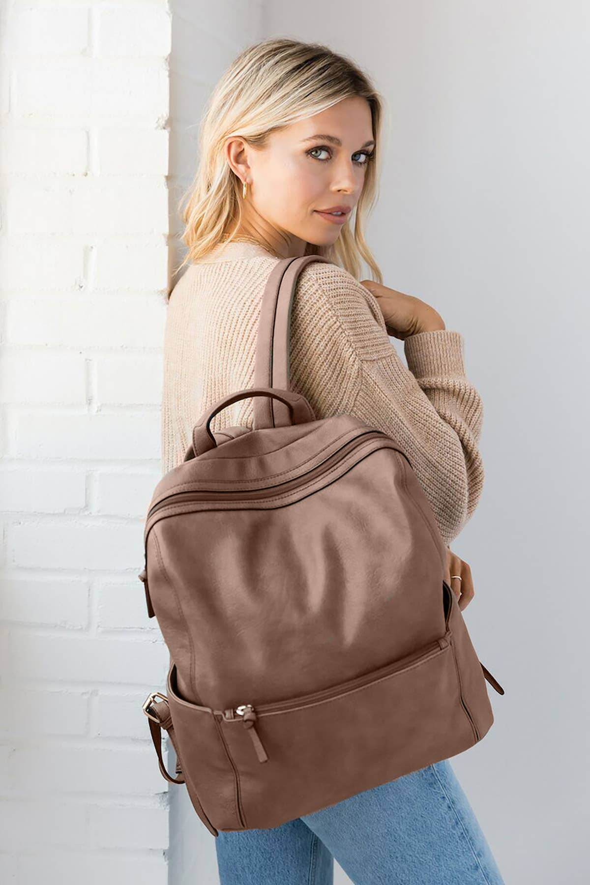Fill up this bag and take on the world. More elegant than your average backpack, yet still practical and durable. Designed with room for a computer and other essential items. * Made with the finest full-grain leather * Adjustable shoulder straps and handle carry strap * Multiple interior pockets including phone slot * Lined bottom * 8" deep x 10" wide x 13" tall