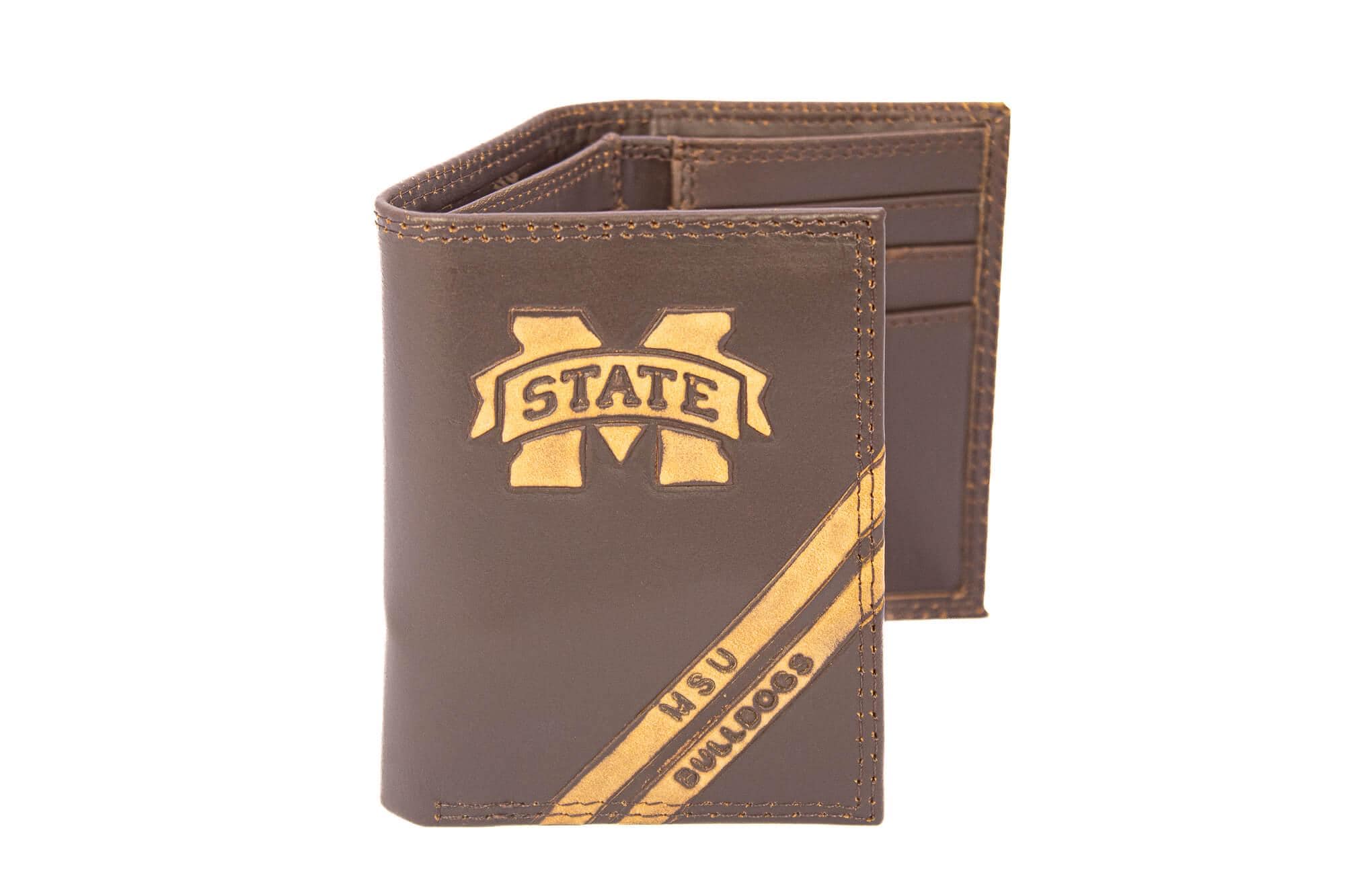 Show your team pride off every day when you carry this laser engraved trifold wallet. You can store your money, credit cards and important business cards in this durable wallet. Measurements 3.25 x 4-inches, available in black or brown. Makes for a great gift for the loyal sports fan!