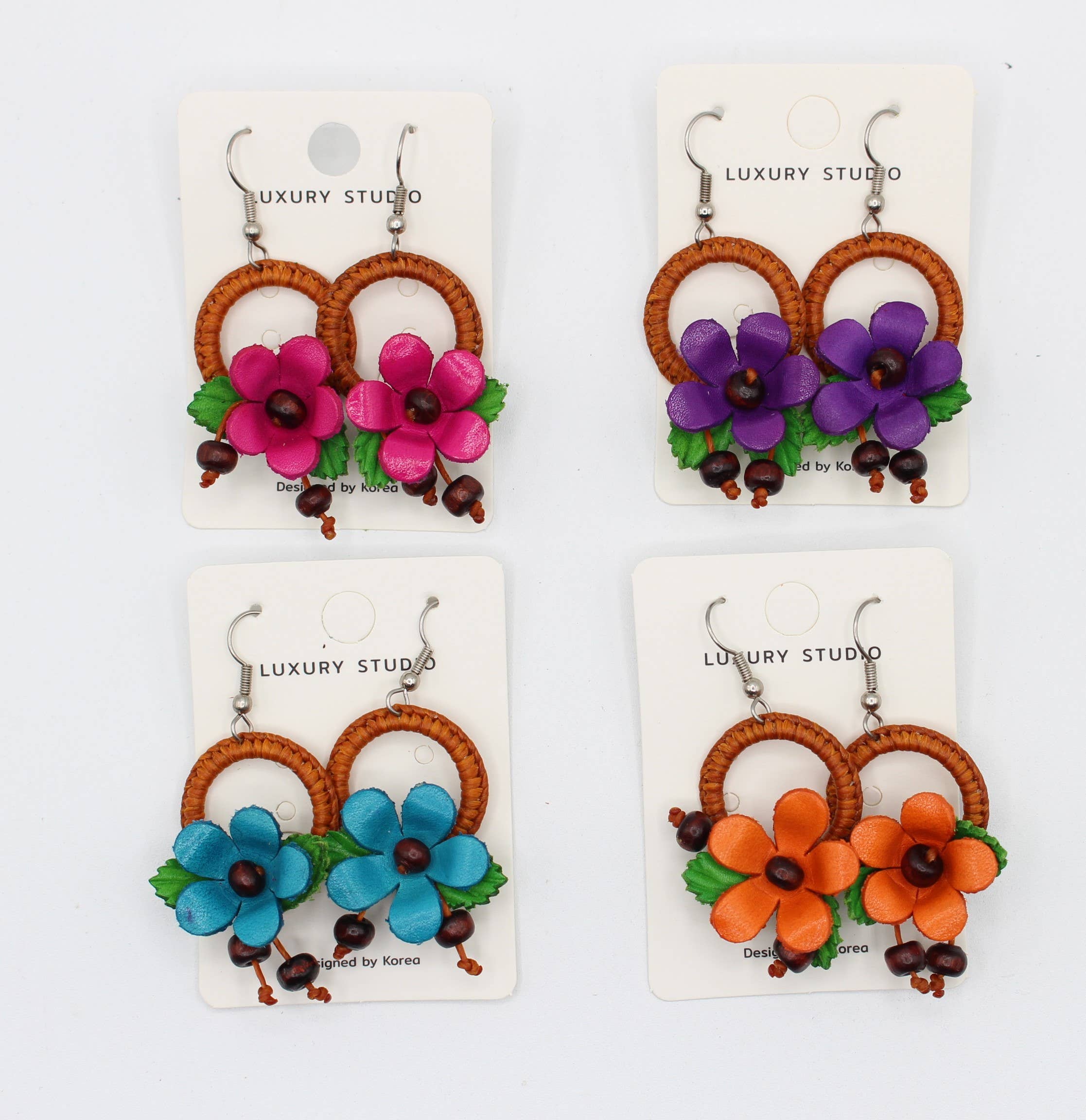 leather flower earrings assorted colors