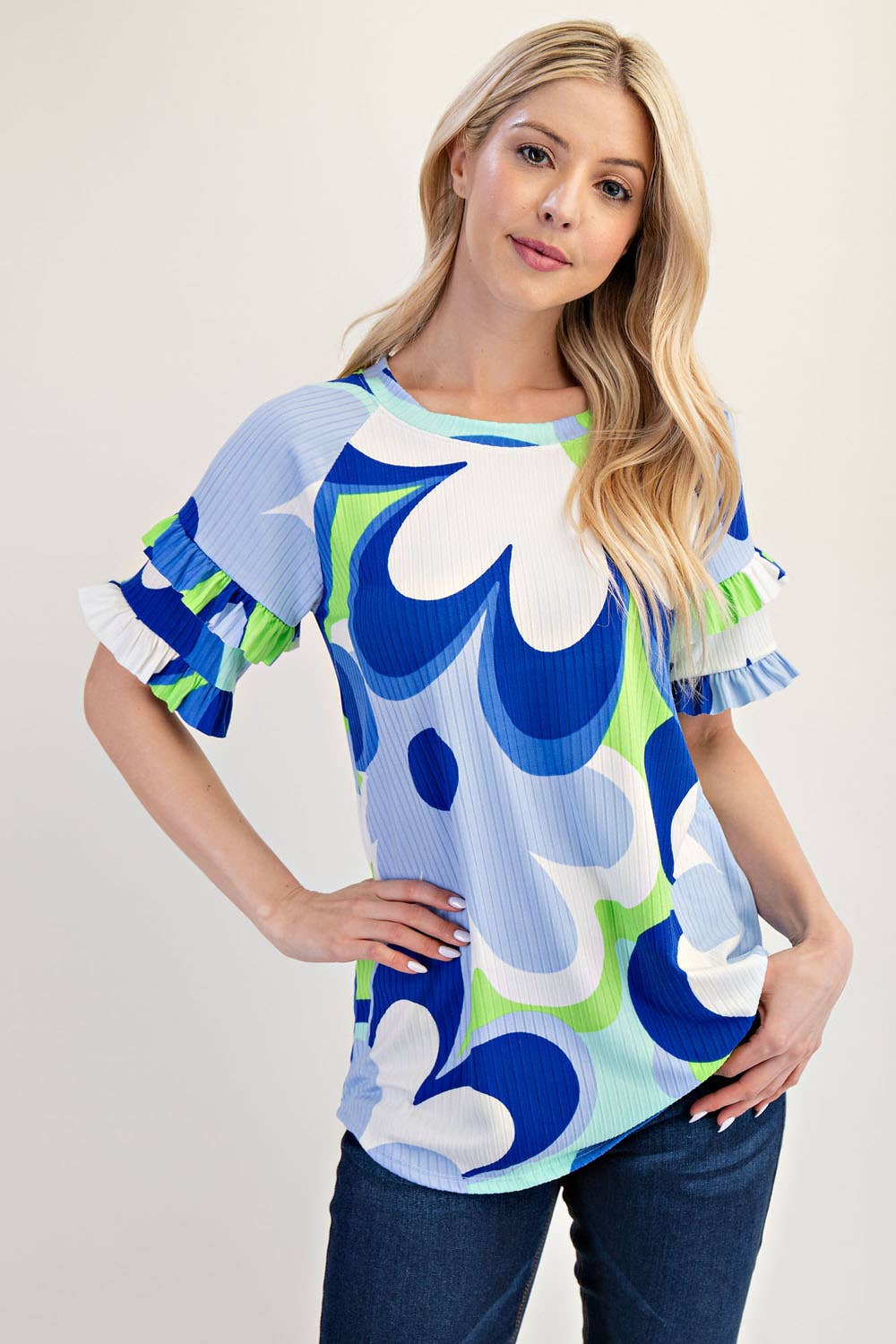 Made in United States Aesthetic: Bohemian and Casual Care Instructions: Hand wash Embellishment: Cable Knit Fabric: 92% POLYESTER 8% SPANDEX Fit: Missy and Plus Size Neckline: Round neck Occasion Theme: Everyday Occasion: Everyday Pattern: Floral Season: Spring/Summer Sleeve Length: Short Sleeve Theme: Plants & Floral Product Language: English
