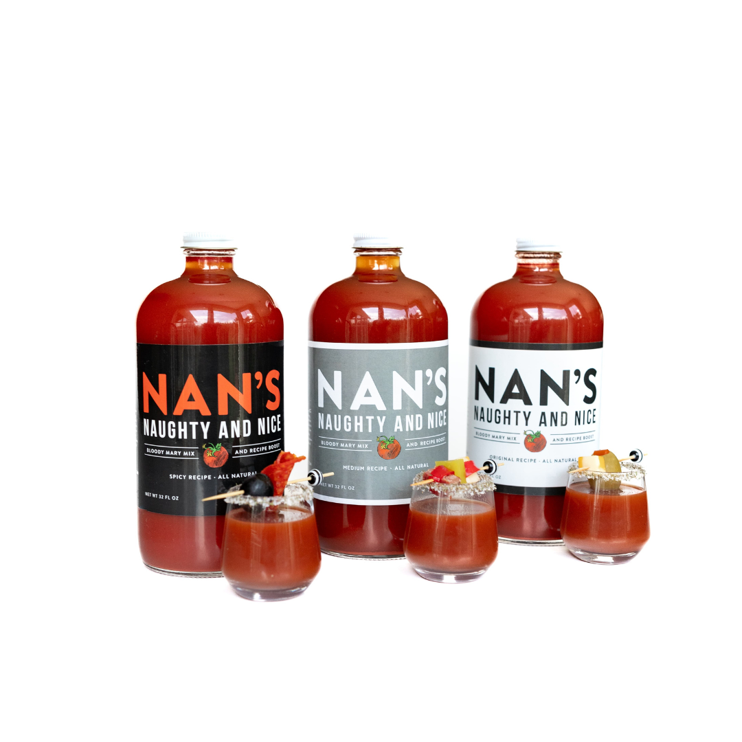 One year a bumper crop of tomatoes led our Mom, Nan, to create and jar a very special Bloody Mary Mix. Being raised to never let anything go unused, she crafted this mix not only to sip on a Sunday with some vodka, but to use as a base in many of her favorite recipes. Nan's can be used to add a Naughty kick to a refreshing Bloody Mary or to add a nice flavor boost to your favorite dishes. We hope you are inspired by out Mom and this bottle of wholesome goodness.