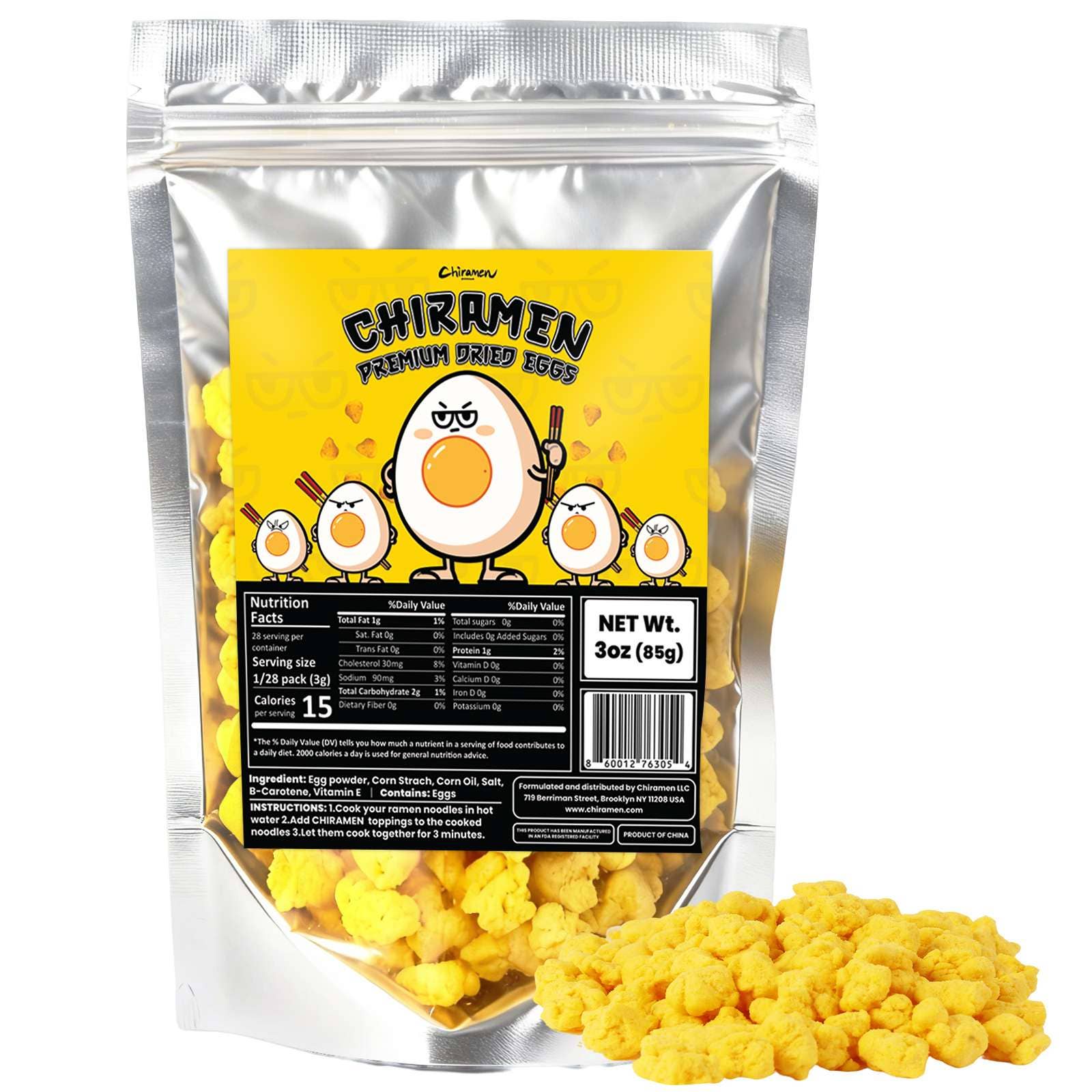CHIRAMEN Dried Seafood Mixed Ramen Toppings, Shrimp, Fish Cake, Squid, Imitation Crab, Eggs, Perfect for Cup Noodles. AUTHENTIC FLAVOR: Chiramen offers high-quality dried toppings for instant ramen and cup noodles. NUTRITION: High Protein (64g protein total), Non GMO, Non Trans Fat. QUALITY INGREDIENTS: At Chiramen, we prioritize using only the finest ingredients to ensure a delicious experience. CONVENIENT: No more bland instant noodles! Chiramen's dried toppings are a quick (3 minutes) and easy way to elevate your meal. Ingredients Fish Cake, Imitation Crab, Plant Based Beef, Squid Slice, Shrimp, Eggs