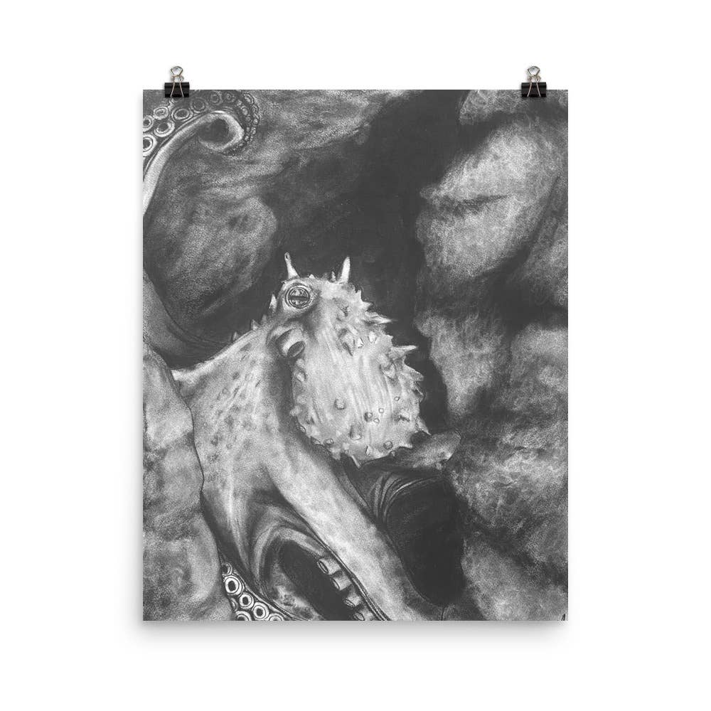 Screen-printed poster, 11"x14". "Some Mythical Creatures of New England" (11"x14") consists of eleven drawings of various mythical creatures from stories told in New England, USA. This poster is produced completely in Vermont; it's custom screen-printed on high quality and thick (100lb) kraft paper at the local environmentally conscious company. The poster is packaged with a 100% recycled packing board and 10% recycled protective sleeve. © As Little Cooking as Possible LLC. All Rights Reserved.