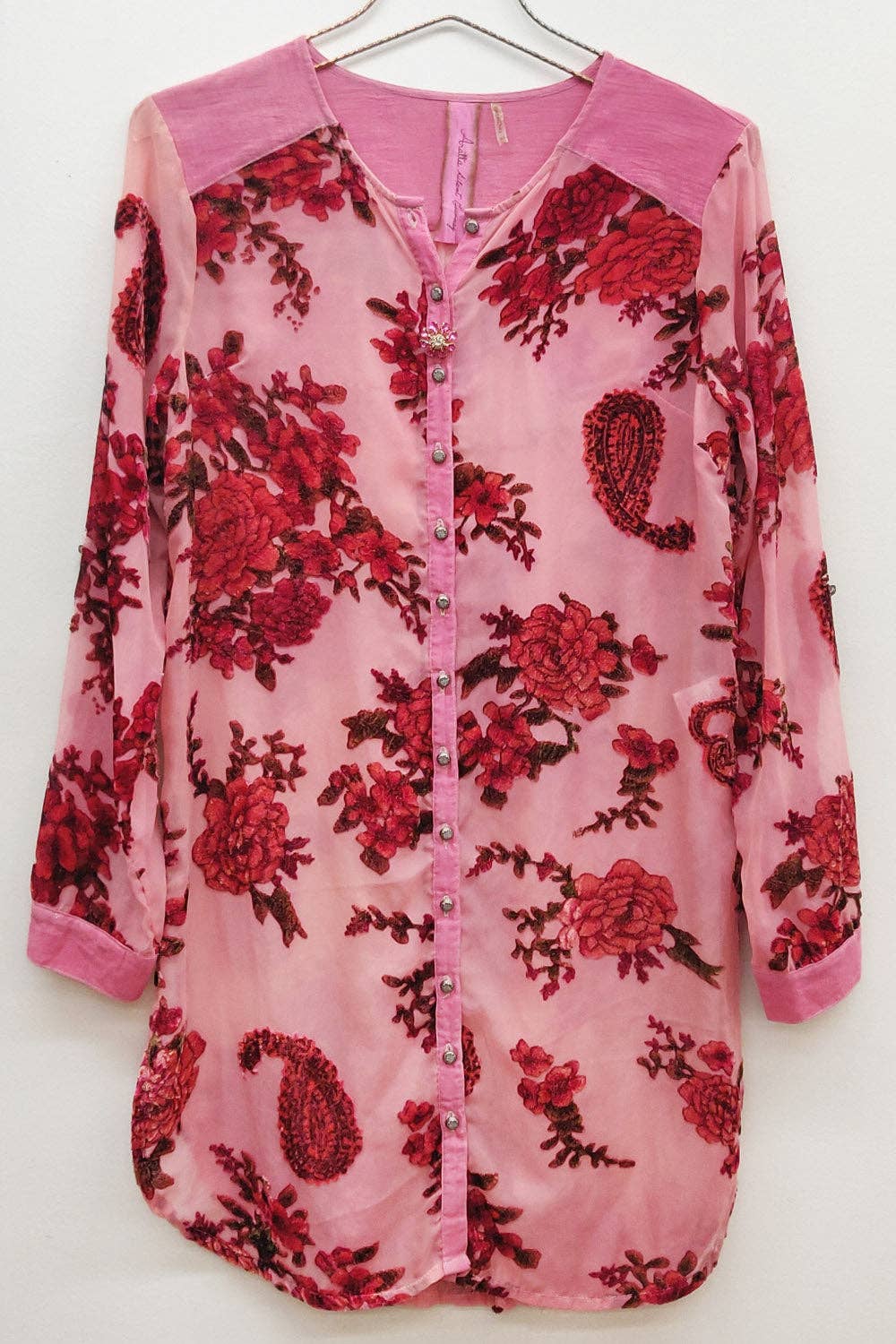 flared floral print linen blouse 26513 100% linen +SIZE