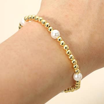 Wholesale Freshwater Pearls Golden Bauble Bracelets