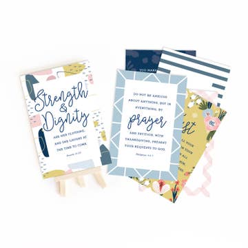 Set of 6, 4x6 inch scripture prints. Includes one wooden display easel. Neatly packaged in a clear plastic box. Instill the Word in your heart and home with these Bible verse cards for encouraging Hurting Hearts. Let them be a simple reminder to set your mind on things above, even in the middle of a busy day. Tags: Christian Gifts, Inspirational Products, Fine Paper Goods, Scripture Prints