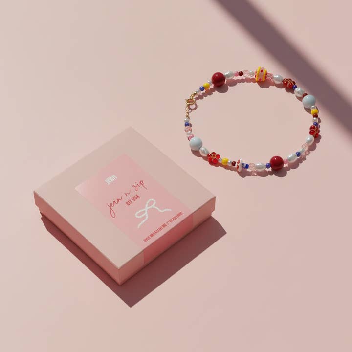 Met dit design uit de JEAN 'N SIP DIY BOX collectie maak je zelf een unieke armband. Volg het voorbeeld, go your own way, of mix het allemaal lekker door elkaar. Jij beslist. Creativiteit > regels, always. 🫶 Perfect voor een solo chill night, een prutsnamiddag met vriendinnen of als cadeau waar mensen echt blij van worden. Geen sokken onder de kerstboom dit jaar, oke? 🤭 🤠 Make whatever the f*ck you want Geen skills? No stress! De handleiding legt het stap voor stap uit, met extra video erbij. En hey, zin om je eigen draai eraan te geven? Do it. Make whatever the f*ck you want, da's het motto. 🎁 Wat zit er in de box? * Alle kralen & bedels voor het gekozen design * Draad + een groot slotje (zodat je bedels kan toevoegen & afwisselen) + afwerkingsonderdelen * Handleiding met stap voor stap uitleg inclusief link naar video uitleg Wat zit er niet standaard in de box? De 3 tangetjes & het juwelenbord zitten niet standaard in de box, maar die kan je hieronder makkelijk bijvinken & toevoegen aan je bestelling. Zo kies je zelf wat je nodig hebt, en vermijd je onnodige tools als je al materiaal in huis hebt. 💌 Levering Deze box is een pre-order en wordt verzonden in de week van 15 december. Perfect op tijd voor de feestdagen.🎄 ⚠️ Limited edtion alert Deze DIY box is beschikbaar in gelimiteerde oplage en enkel tijdens de feestperiode. Op = op. Niet twijfelen dus. 💭 Nog vragen of twijfels? Slide gezellig in onze DM’s of stuur een mailtje. We helpen je graag verder. Let’s get making, baby 💖