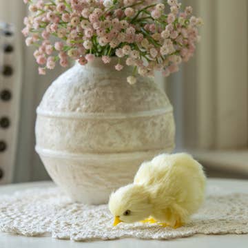 Say Hello to Mabel! She's quirky, she's fun, she's sometimes grumpy, but she's still Mabel. Each chicken is hand crocheted which give it a unique character. When attaching the comb, eyes, and beak, nothing is exactly perfect, but let's be honest, it gives each chicken it's own personality. Not recommended for children under 3.