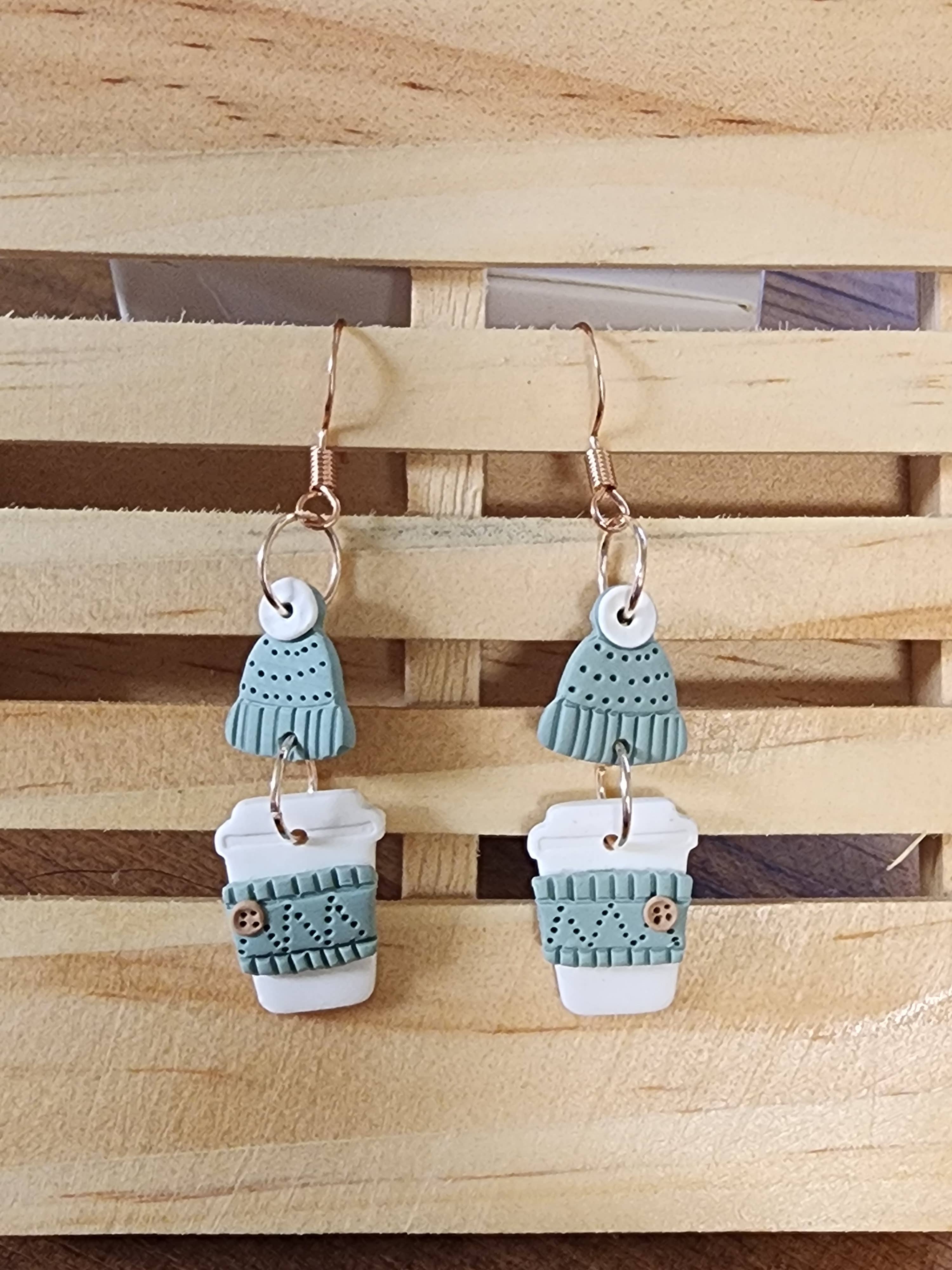 These pumpkin latte coffee drink dangle earrings will have you getting ready for cozy sweater weather in no time! Perfect for any fall aesthetic or for a coffee lover in your life. Would pair perfectly with a knitter sweater, scarf and your favorite boots. These earrings are made from polymer clay and hang from rose gold plated stainless steel ear wires. About the item: -Tiny knit hat Christmas mocha coffee drink dangle earring -Made from polymer clay -Hypoallergenic stainless steel -Made to order Please note: Almost all colors are custom made and mixed by hand. Due to this nature there may be slight difference that may occur. Attention to detail will be given to each piece to make for a unique piece. Please know that while very polymer clay is durable it can still be broken or scratched.