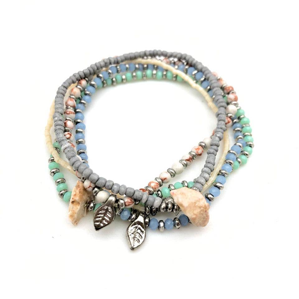 Celebrate the joy and wonder we find in nostalgic memories. The first step onto the sand of a warm beach. Soaking in the magical light at golden hour. The semi-precious stone and its meaning are highlighted on the back on each card and connect to the photograph on the front of the card. Each playful stacking bracelet incorporates semi-precious stones along with Japanese glass Miyuki beads. • Materials: Miyuki delica beads, semi-precious gemstones, and plated brass. • Pull the tails to easily adjust the bracelet size. • Hypoallergenic. Nickel and Cadmium free. Amazonite | Stone of Courage *Please Note: Each item is hand crafted using natural materials, so slight variations in color and size add to the distinctive beauty of each piece.