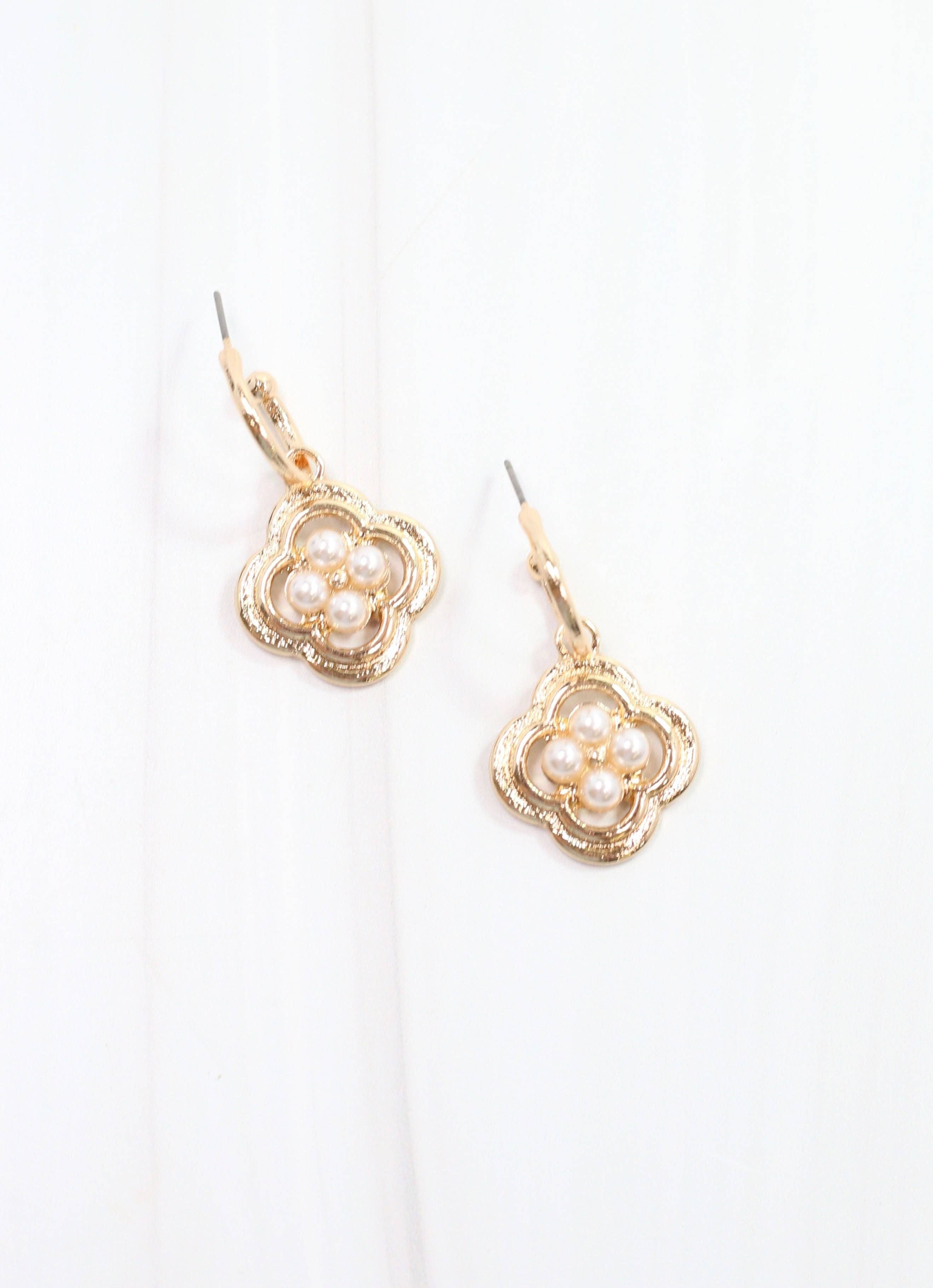 Pyxie Cross and Pearl Earring Gold