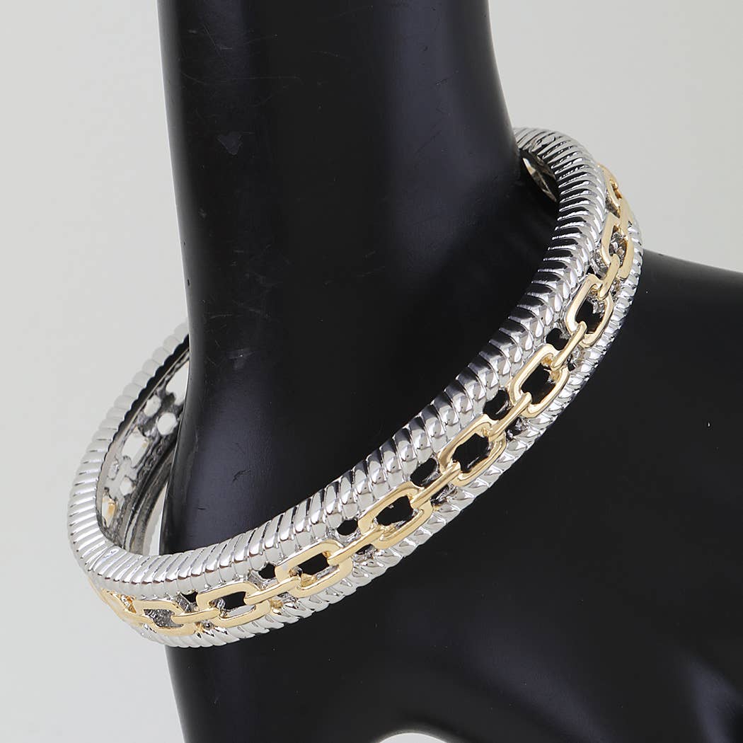 Uniting together with multiple different chain widths, this unique bracelet is not only stylish but also timeless. Clasp anywhere on the sizing chain to customize the size of this bracelet. One size fits most. (Fits Small, Medium & Large wrists) Handmade with care in Austin, TX. Available in Sterling Silver and 14kt Gold-Fill.