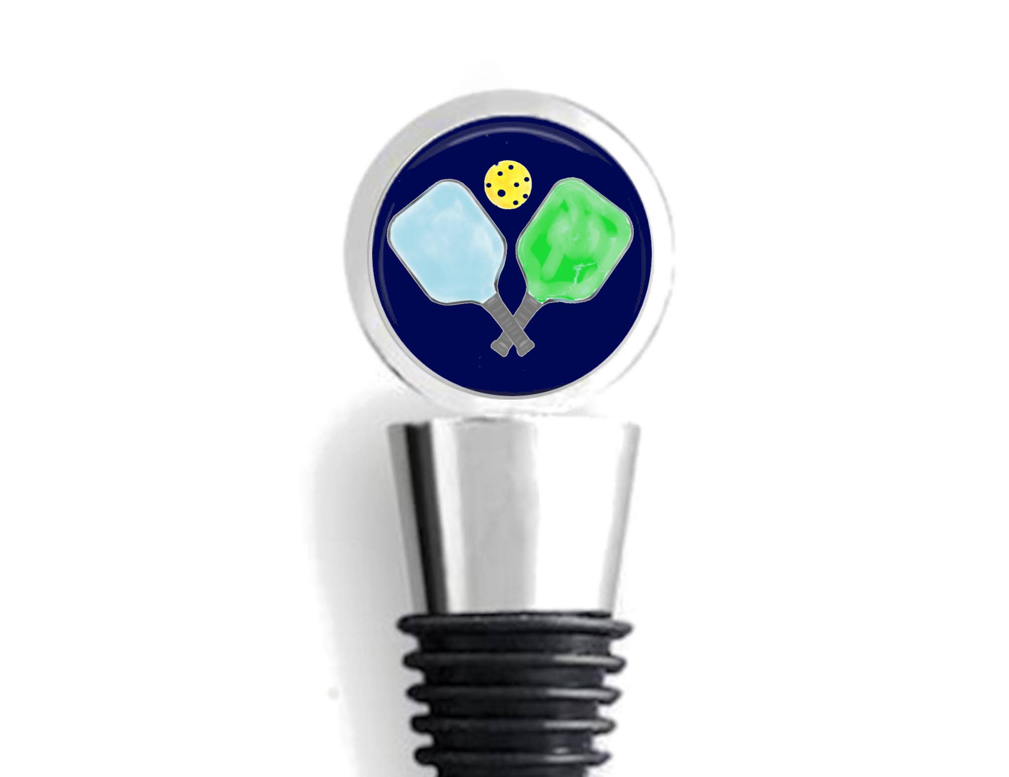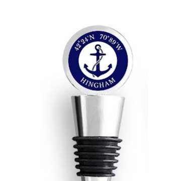 Show your town pride with one of our Custom Town Wine Stoppers! These make great hostess gifts and go great with our custom wine glasses and coasters. Each Wine Bottle Stopper is chrome plated and features high quality graphics under glass. The round top measures 1 inch in diameter and the body of the stopper measures 2 3/4 inches long. It is more substantial in size that some inferior models and it has a nice weight to it. PLEASE CHECK THE CUSTOMIZATION BOX TO ENTER THE TOWN NAME DESIRED.