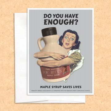 Looking for a sweet and memorable way to send your warm wishes? Look no futher than this "sappy message inside" greeting card, which features a jug of Vermont maple syrup. 🍁 Whether you're celebrating a special occasion, expressing your gratitude, or simply sending some love, this card is sure to bring a smile to anyone's face. 💌 Each card is lovingly crafted with high-quality materials, including premium cardstock and vibrant, fade-resistant inks. 🌟 Product Details: - Folded card measures 4.25” x 5.5” on heavy white card stock - Blank Inside - Envelope Included - Packaged in a clear cello bag Perfect for maple syrup enthusiasts, Vermont lovers, or anyone who appreciates a good pun, our "sappy message inside" greeting card is guaranteed to make your recipient's day a little brighter.