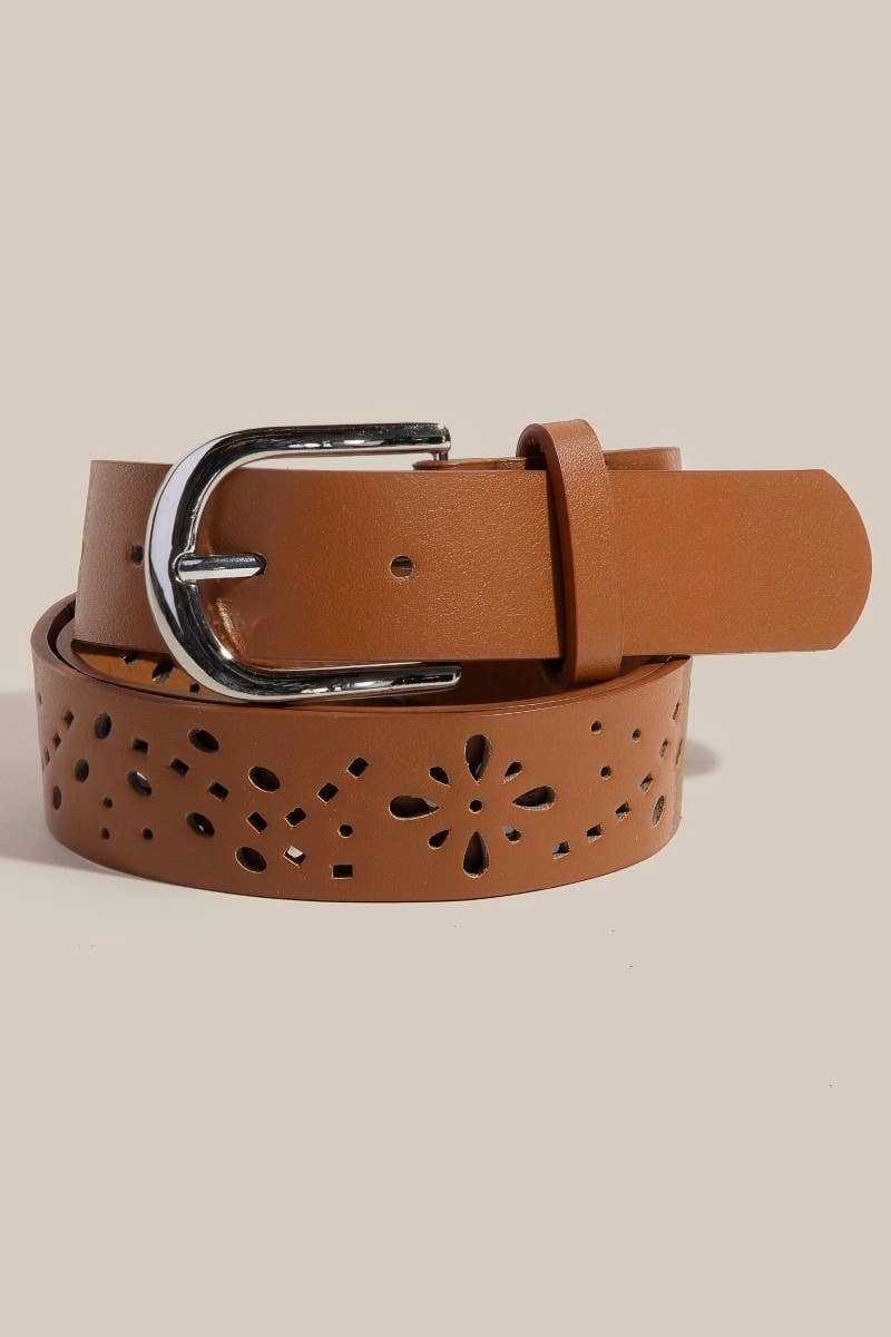 Width of strap is 1.5" or 38 mm. Round buckle in antique nickel or brass finish Measurement of the belt: From Start of strap to tip end of belt S/M: 38", M/L: 41",L/X:44". From start of strap to middle hole of belt S/M:33", M/L:36", L/X:39" Strap is embossed then hand painted on quality leatherette with a genuine leather lining in nature color Strap has snaps to easily install your favorite buckle.