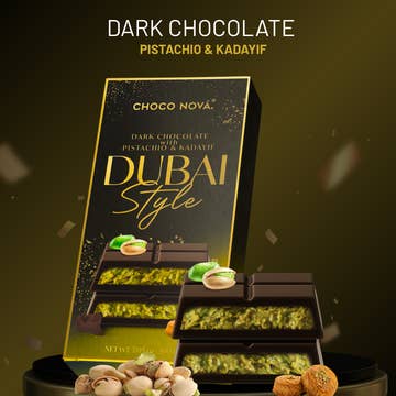 HANDMADE TO PERFECTION. THE HIGHEST CONCENTRATED PISTACHIO CREAM. Discover RAH’s signature Dubai Chocolate Bar — a handcrafted fusion of silky milk chocolate, crunchy pistachio, and crispy golden knafeh. Hand made in small batches with premium ingredients, each bite captures the essence of Middle Eastern indulgence. Loved by over 1M customers worldwide, this gourmet bar brings luxury and heritage to every shelf. Handmade with love & with the highest concentrated pistachio cream (at 42%). Perfect for gifting, gourmet baskets, and special occasions like weddings, birthdays, and holidays. Also ideal for luxury treat boxes and upscale retail displays. Ingredients: Sugar, Cocoa Butter, Non-Fat Dry Milk, Kataifi (Wheat Flour), Pistachio, Chocolate Liquor, Vegetable Oil (Palm, Sunflower), Soy Lecithin (an emulsifier), Vanilla, Salt. Shelf Life: 12 months Storage: Store in a cool, dry place Weight: 70g (2.45oz) per bar Packaging: Individually wrapped bars in retail-ready PDQ display ca