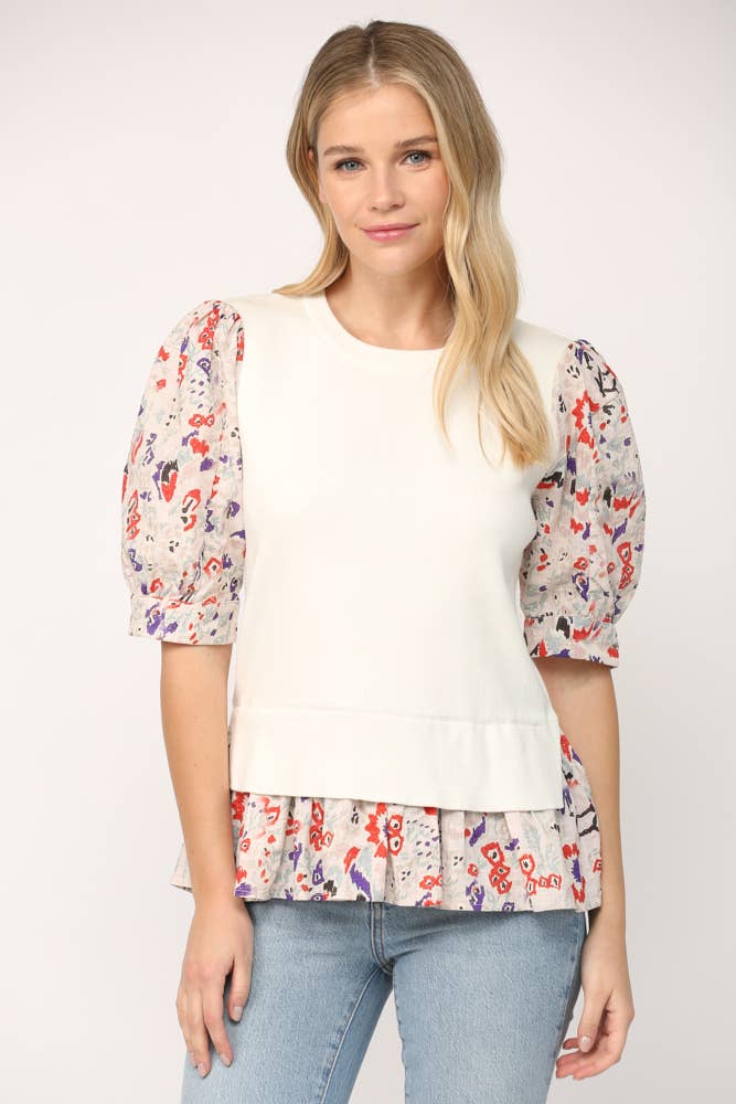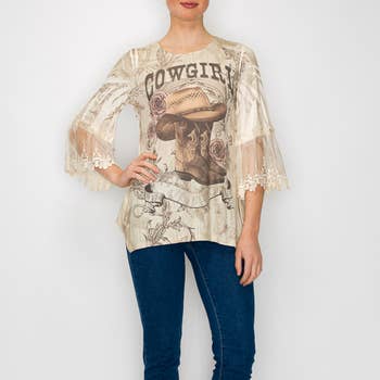 1/2 lace sleeve v-neck tee SALE