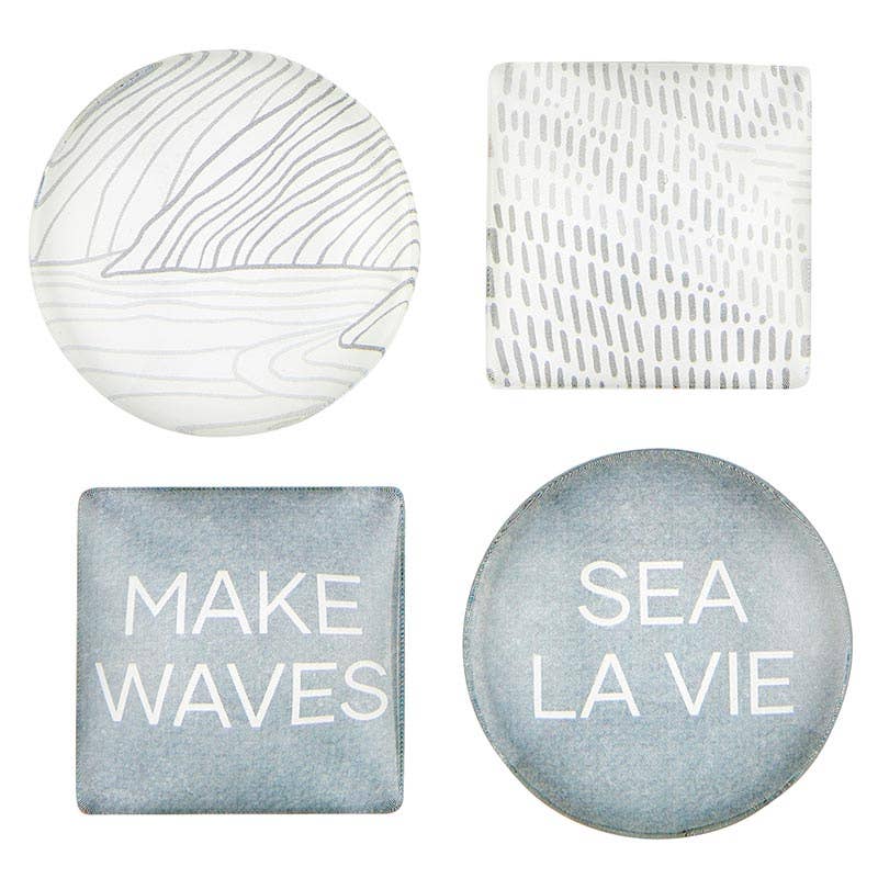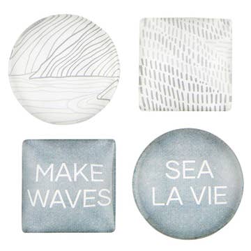 Sea Shells magnets : Sea snail / Starfish / Scallop / Conch These decorative magnets can be put on any metal surface like the fridge, lockers, filing cabinets. Great hostess, housewarming and teacher gifts, to name a few. Sizes range from approximately 1 to 2 inches. 4 decorative magnets come nicely packaged for easy gift giving (see attached photo). Each, has a powerful rare earth magnet on the back which means, they won't fall off the fridge when you slam the door shut! See our entire selection of these, in the MAGNET section of our shop.