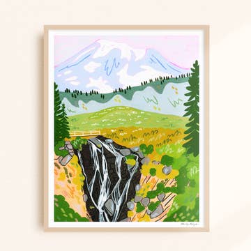 Full-Color Giclée Print, a sophisticated museum-level quality, archival print using pigment-based inks, displaying every color and detail of the original work on smooth bright white 100% Cotton Archival Paper. Inspiration: On Rialto Beach we walked down the shore, climbing over driftwood and collecting a rainbow of rocks until we were stopped by a large cliffside jutting out into the water. The tide was low so we set up our tents and left our packs, then went exploring. We walked through a perfectly arched Hole in the Wall and explored the tidepools underfoot. As we turned back towards camp, we were met with the sea stacks perfectly framed in the arching cliffside passageway. All prints are individually packaged, unframed, with cardboard backing and protective sleeve