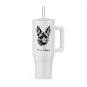 Enjoy your favorite drink on the go with 20 Oz SERENGETI Tumblers for Pet Lovers. Whenever you're spending time outdoors, having the right type of tumbler is essential for travel. The German Shepherd Tumbler - Travel Mug has a beautiful 3D artwork of the dogs. The artwork is realistic and the dogs and cats are slightly raised with the 3D printing German Technology. This will become your most favorite tumbler yet. It makes a perfect Gift for any occasion. Features: * 18/8 Stainless Steel, BPA Free * Double-wall Vacuum insulated * Keeps drinks hot for up to 8 Hours * Keeps drinks cold for up to 12 Hours * Car Cup Holder Friendly * Leak Proof Lid * No sweat Design * Durable High Gloss Finish * 3D printing of your favorite Dog For best quality and durability, we recommend hand washing only for your new tumbler. - This item is NOT microwave safe.