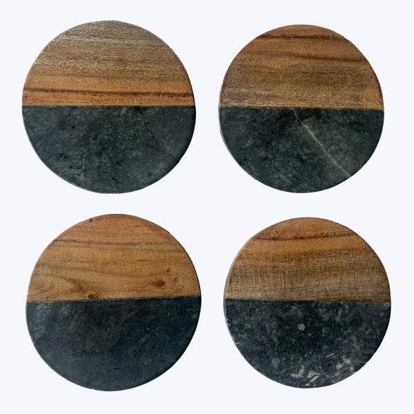 Artisan Marble and Wood Square Coaster Set of 4 - Black