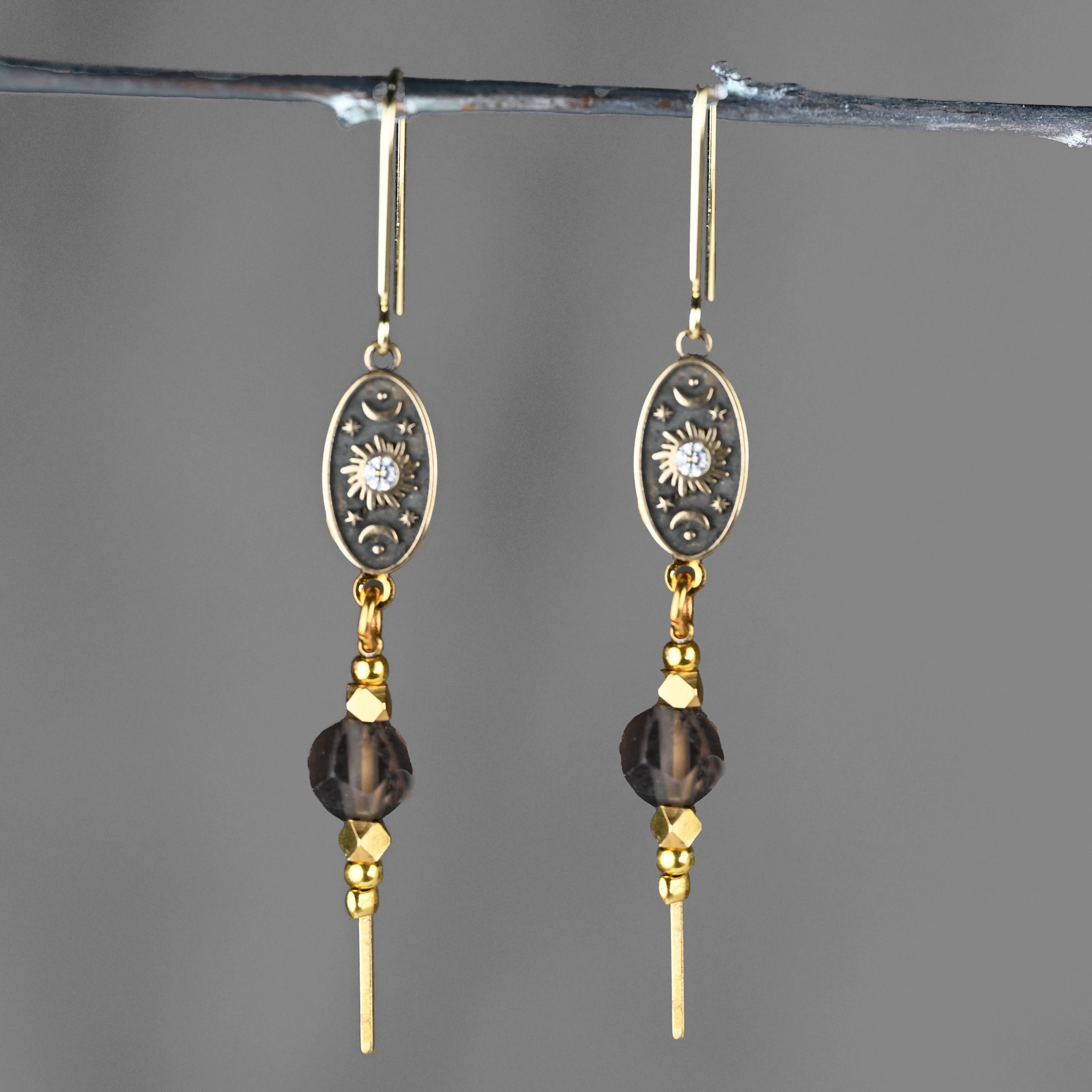 Silver gem dangles feature a large grey center stone in a halo setting. These dangles sparkle and shimmer, and are sure to amp up your outfit! Details: * post backings * lead/nickel safe * packaged on unbranded white earring display cards