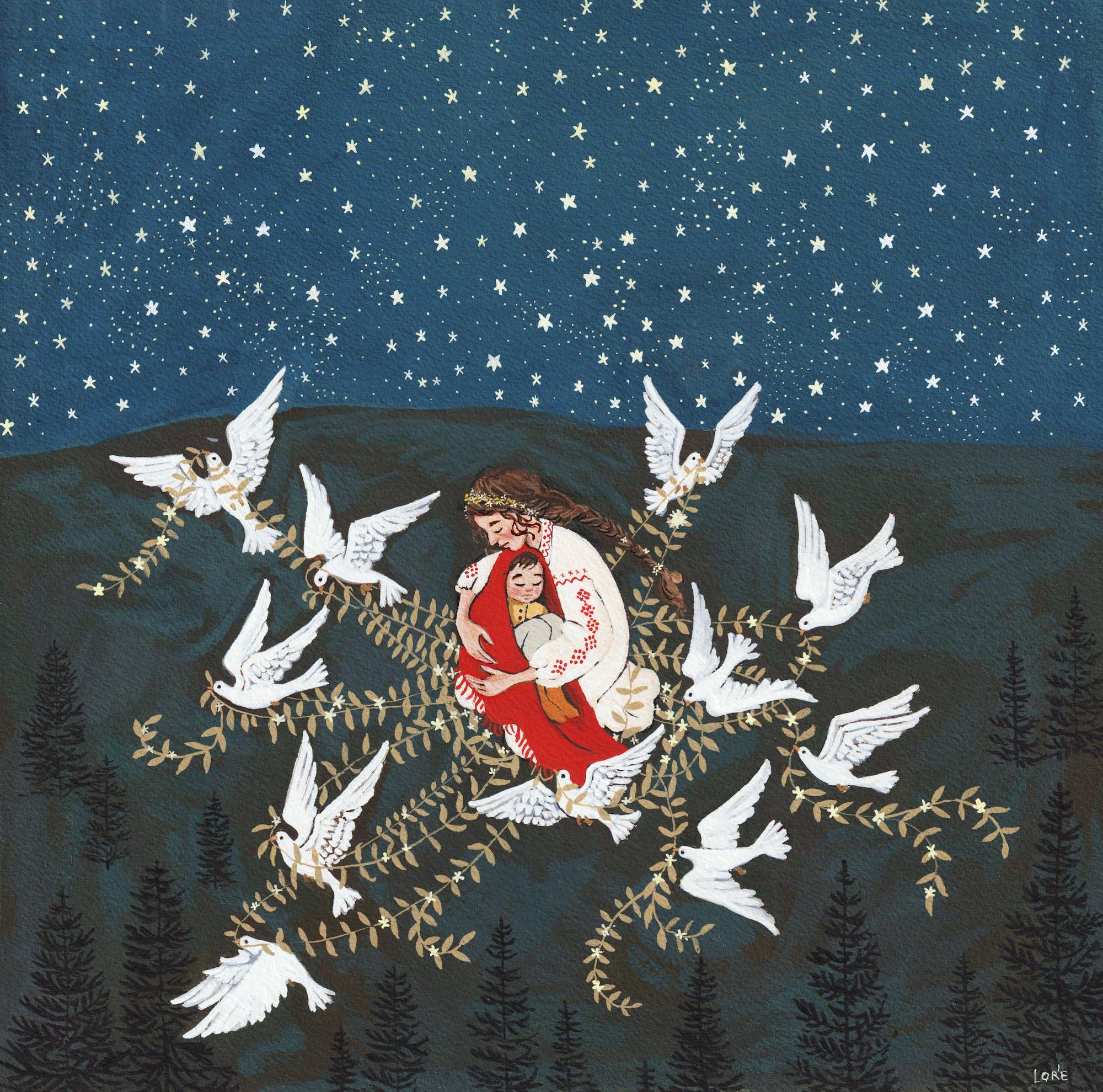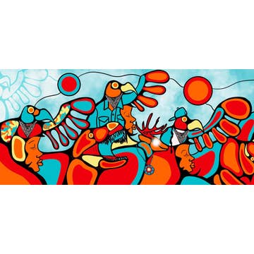 Prayers Of Gratitude by artist Betty Albert. Art print dimensions : 12" x 12" inches (30.4cm x 30.4cm) Her cultural background is Cree. The artist is paid a royalty on every sale.