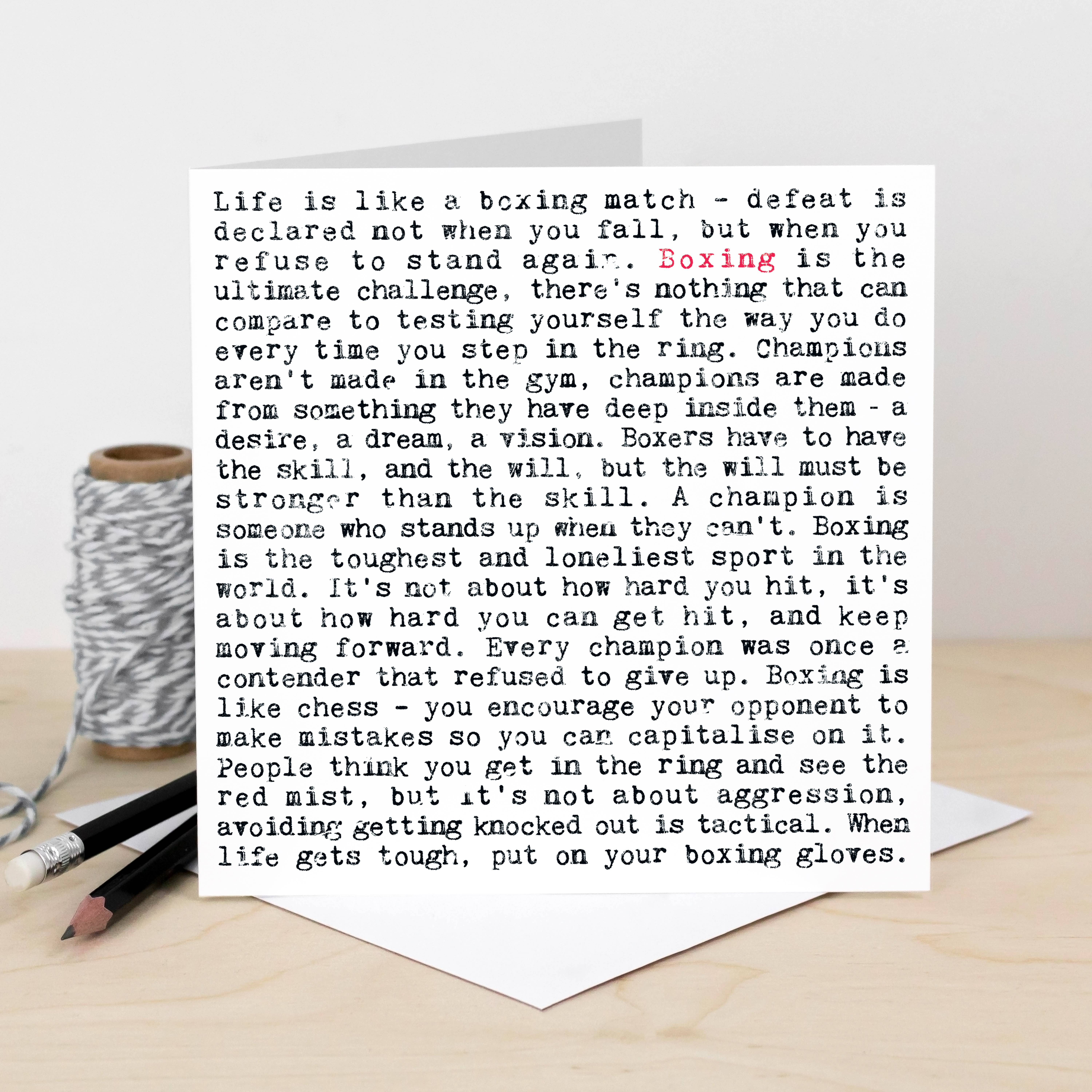 Heavyweight textured uncoated card. Envelope colour: kraft brown. From Coulson Macleod's 'Gotcha' product range.