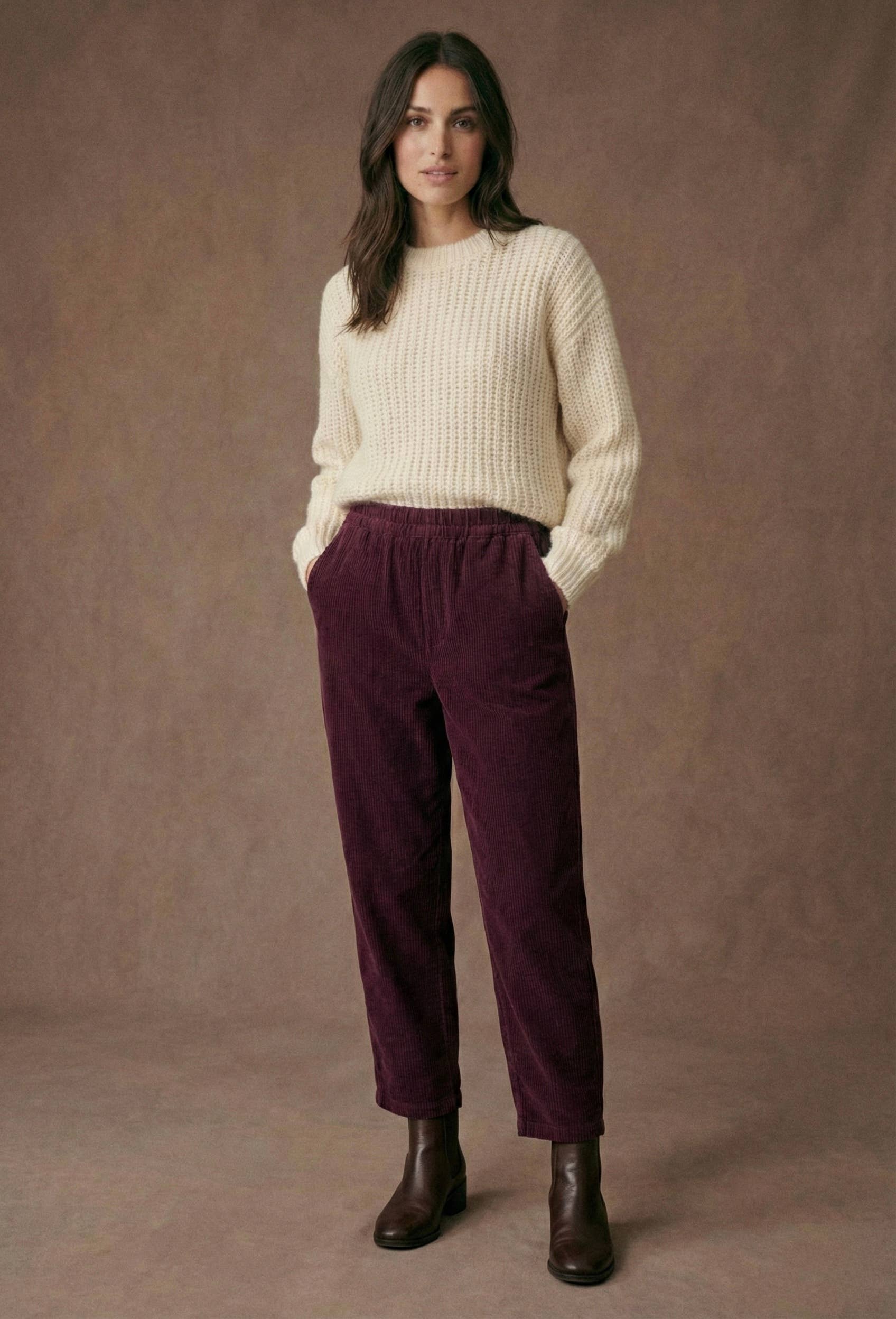 *Available in a pack of 3 sizes (36-42 / 42-46 / 46-52) reference: PPN2509 - Material: 97% cotton, ideal for a natural and breathable look - Fit: - High waist for a slender silhouette - Wide and flowing cut for optimal comfort - Slightly cropped length (ankles exposed) - Closure: Decorative buttons on the front, inspired by nautical style - Light darts for better structure - Straight hem finish - Pairing ideas: - With a fitted top and a blazer for a more sophisticated outfit - With a fine knit sweater and white sneakers for a casual and comfortable style
